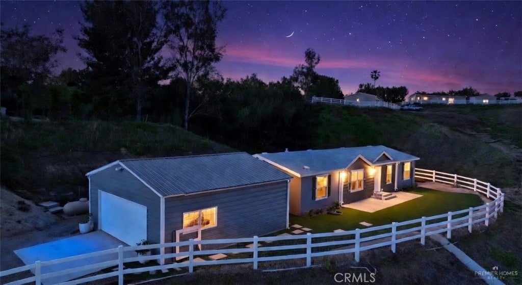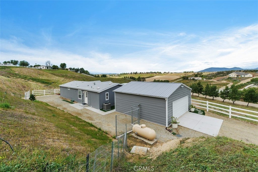 This recently installed, never-lived-in home sits perched on a scenic hilltop in the heart of Temecula's renowned wine country, offering breathtaking, endless views of South Coast Winery, sprawling vineyards, and rolling hills. Ideally located just around the corner from the Anza Road roundabout, it provides convenient central access to premier wineries while remaining minutes from town. The residence features a spacious open floor plan with four bedrooms, two bathrooms, thoughtful upgrades, and an oversized two-car garage. The expansive 2.13-acre lot includes a large flat area below with additional easement access—perfect for an outbuilding, horse facilities, or future expansions—along with mature pine trees and plenty of room for toys, animals, or personal projects. Enjoy peaceful mornings or entertaining on the front patio, surrounded by vinyl fencing, where you can watch hot air balloons gracefully rise over the valley. This rare, versatile property seamlessly combines immediate comfort, incredible potential, and prime proximity to all that Temecula has to offer.
