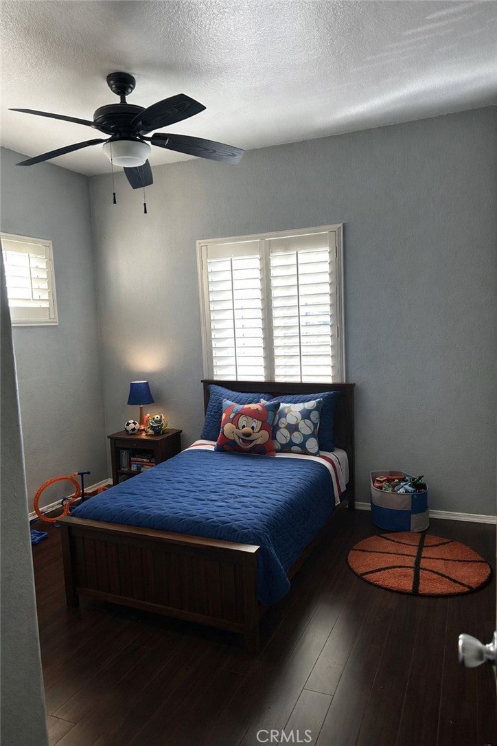 PAID OFF SOLAR!!! Tucked away in a peaceful cul-de-sac, this freshly painted and lightly remodeled, energy-efficient, solar-powered residence offers more than 2,600 square feet of thoughtfully designed living space. Featuring 5 bedrooms and 3 bathrooms, the home’s airy layout, soaring ceilings, and open-concept design make it ideal for gatherings and everyday comfort. Step through the impressive double doors into a bright entryway accented by 20-foot ceilings, stylish tile flooring, fresh designer paint, warm neutral tones, and elegant wood shutters that let you control the natural light. Unlike many homes in the neighborhood, this one includes a versatile downstairs suite, perfect for guests, in-laws, or a private home office. The main level flows beautifully with a formal living and dining area leading into a cozy family room, breakfast nook, and a crisp white kitchen complete with a center island, walk-in pantry, and nearby laundry area for convenience. Upstairs, new flooring extends throughout the entire level. The expansive primary suite is truly a retreat featuring high ceilings, dual walk-in closets, and a luxurious bathroom with his-and-hers vanities, soaking tub, separate shower, and private water closet. Three additional well-sized bedrooms and a full bath complete the upper floor, making it perfect for families who prefer all bedrooms close together. Outside, the front and backyards are landscaped with low-maintenance, drought-tolerant plants, blending beauty and sustainability. With its fresh paint, light updates, and paid-off solar, come experience this exceptional home and imagine the lifestyle it offers!
