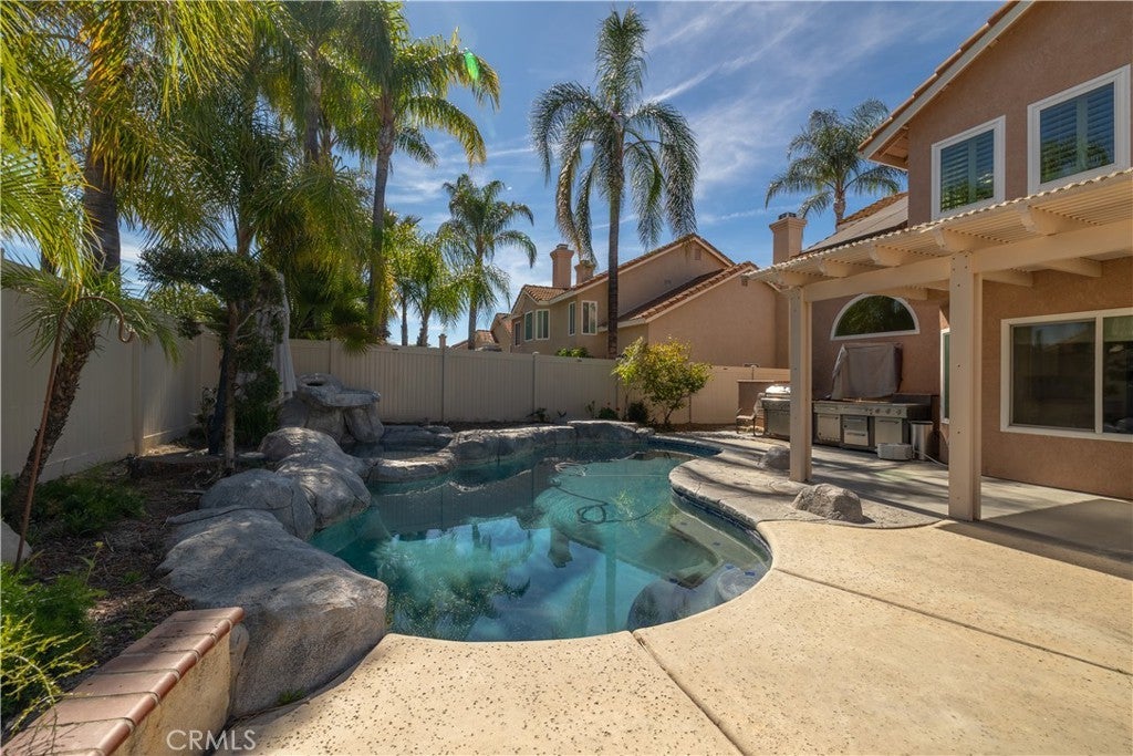 Welcome to 24054 Sweet William Lane — a spacious 4-bedroom, 3-bath, 2,700 sq ft two-story home on the highly desirable west side of Murrieta, nestled in one of the area's most established neighborhoods served by award-winning schools. The backyard is a true Southern California retreat, featuring a private pool and spa perfect for year-round entertaining. With a generous floor plan, abundant natural light, and great bones, this home is priced to reflect its cosmetic potential — giving the right buyer an opportunity to build instant equity in a premier location. Conveniently close to shopping, dining, and parks. Come see the space, envision the possibilities, and make it yours.