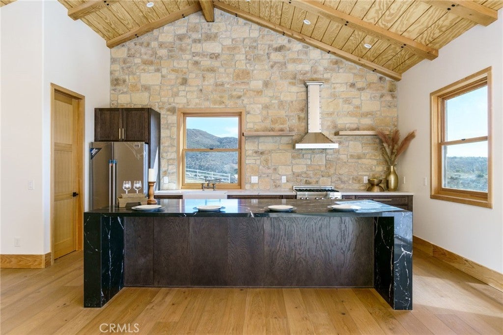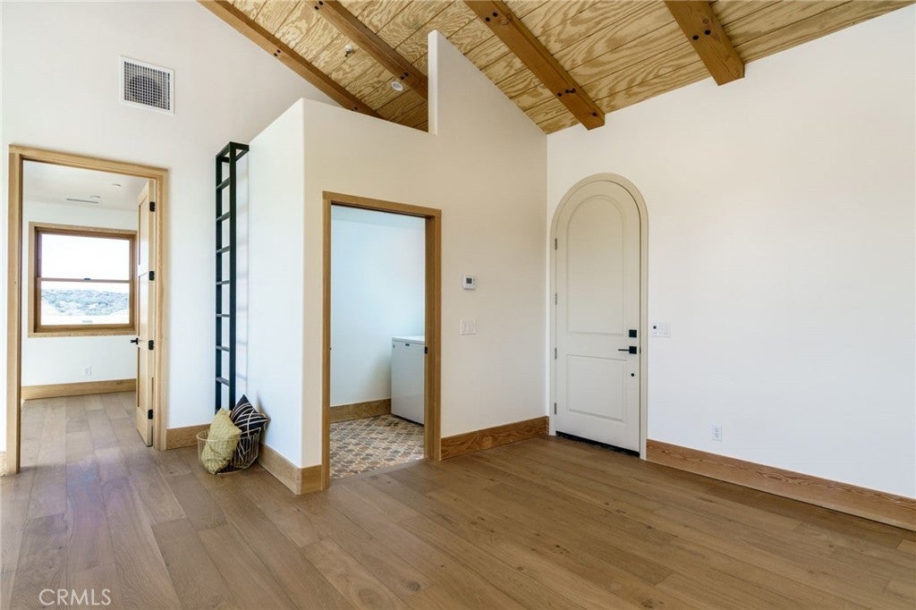 Unique Opportunity! 9+ acres, home on a hill with UNOBSTRUCTED VIEWS! Talk about getting away from it all! Originally designed to be a luxury weekend home, but living here full time would be an absolute dream! This property is a little East of Temecula's Wine Country and you will feel like you are totally away from the hustle and bustle. Private and secluded, but not too far from town. This home is stunning and can be expanded on. Stone work is gorgeous and the finishes inside the home feel like luxury. There is 1 bedroom and a small mini loft area that provides for a sleeping area with room for a full sized mattress or an elevated space to hide out and read or just relax. Custom tile shower with glass door. Stunning tile floors in the bathroom and laundry, which is in its own dedicated room. The kitchen is beautiful with lots of cabinet storage and has a spacious pantry. Upgraded countertops with a waterfall finish on the kitchen island. Farmhouse sink, 6 burner stove. Wood windows and sliding glass door. Wood ceiling beams. There are views from every window and from outside, you feel like you're on top of the world. Endless possibilities! Build onto the home, while living comfortably on site! Home is on a well, propane and septic. More than enough space for toys, animals and possibly another dwelling? The land and views are truly breathtaking! Don't miss out on this opportunity!
