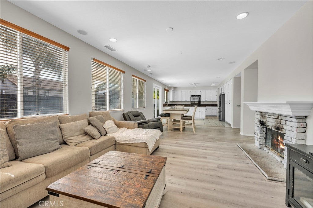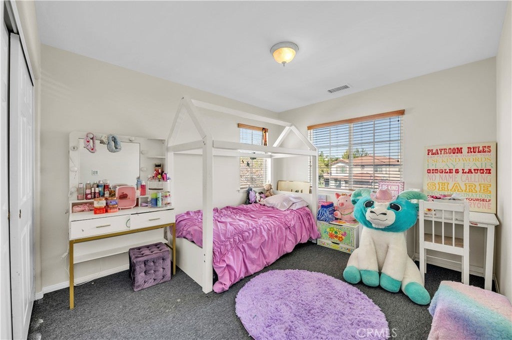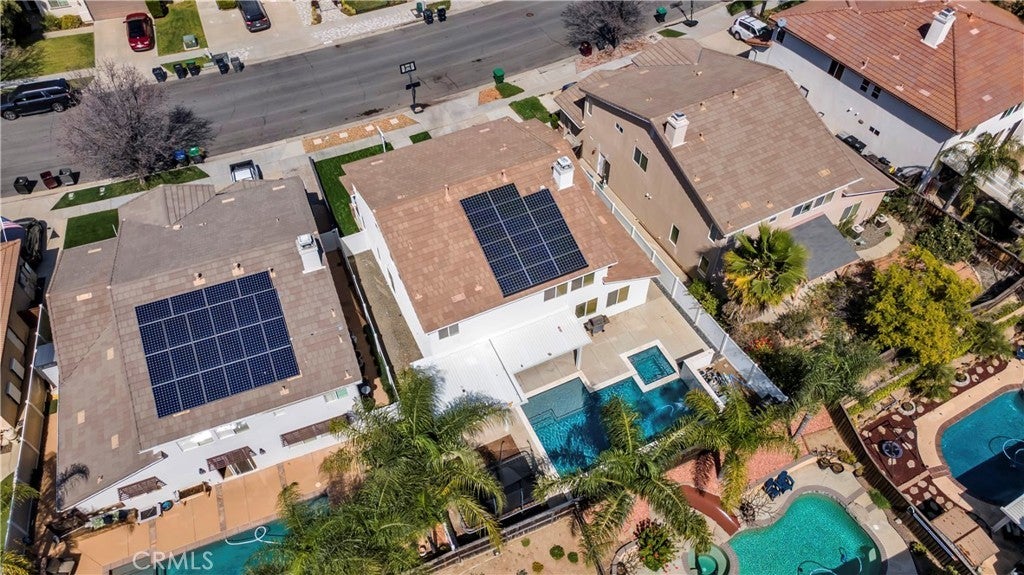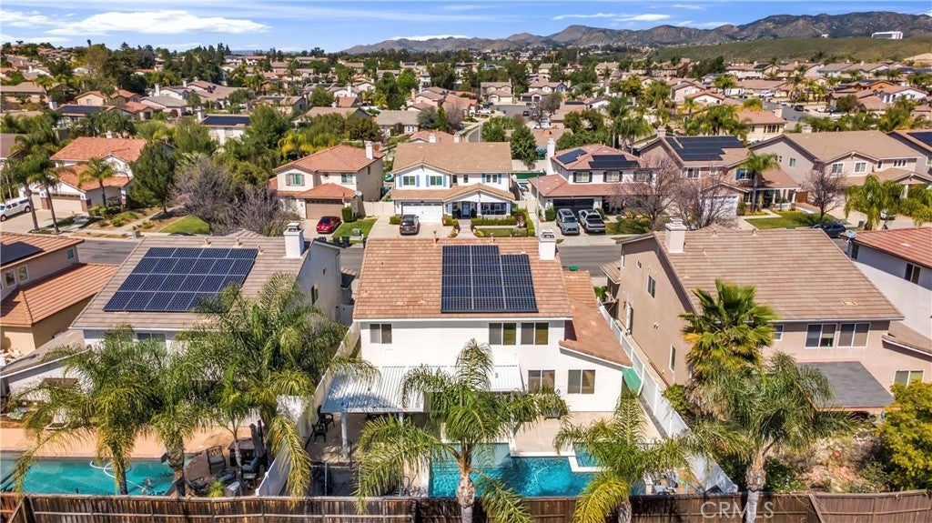 HUGE PRICE IMPROVEMENT-PAID OFF SOLAR POOL HOME in Murrieta’s highly desirable Copper Canyon community—just a short walk to Cole Canyon Elementary. This beautiful 4 bedroom, 3 bathroom home features 9-foot ceilings, abundant natural light, brand new interior paint, and a cozy brick fireplace, along with a functional floor plan that includes a built-in desk area upstairs. The primary suite offers two spacious walk-in closets for excellent storage. The home welcomes you with a charming enclosed front porch with classic white railing, creating a warm and inviting space to relax and enjoy the neighborhood. Step outside to your private backyard retreat with a sparkling pool featuring a waterfall and multi-colored pool lighting, plus a spacious covered patio with lighting, ceiling fans, and wiring for outdoor entertainment—perfect for gatherings and relaxing evenings. French doors open directly to the patio for seamless indoor-outdoor living. The yard also includes brand new white vinyl fencing, backyard drainage, and a side yard ideal for a dog run. Additional upgrades include paid-off Tesla solar, new garage doors, new water heater, and a new front sprinkler system. Located in the desirable West Murrieta Copper Canyon community, known for low taxes, no HOA, scenic foothill trails, parks, and convenient access to shopping and freeways. The neighborhood is also loved for its festive holiday spirit, with beautiful Christmas and Halloween decorations throughout the community. Designed for easy Southern California living, this home offers the perfect blend of comfort, thoughtful upgrades, and outdoor entertaining. Come experience the charm and lifestyle this Copper Canyon home has to offer today!