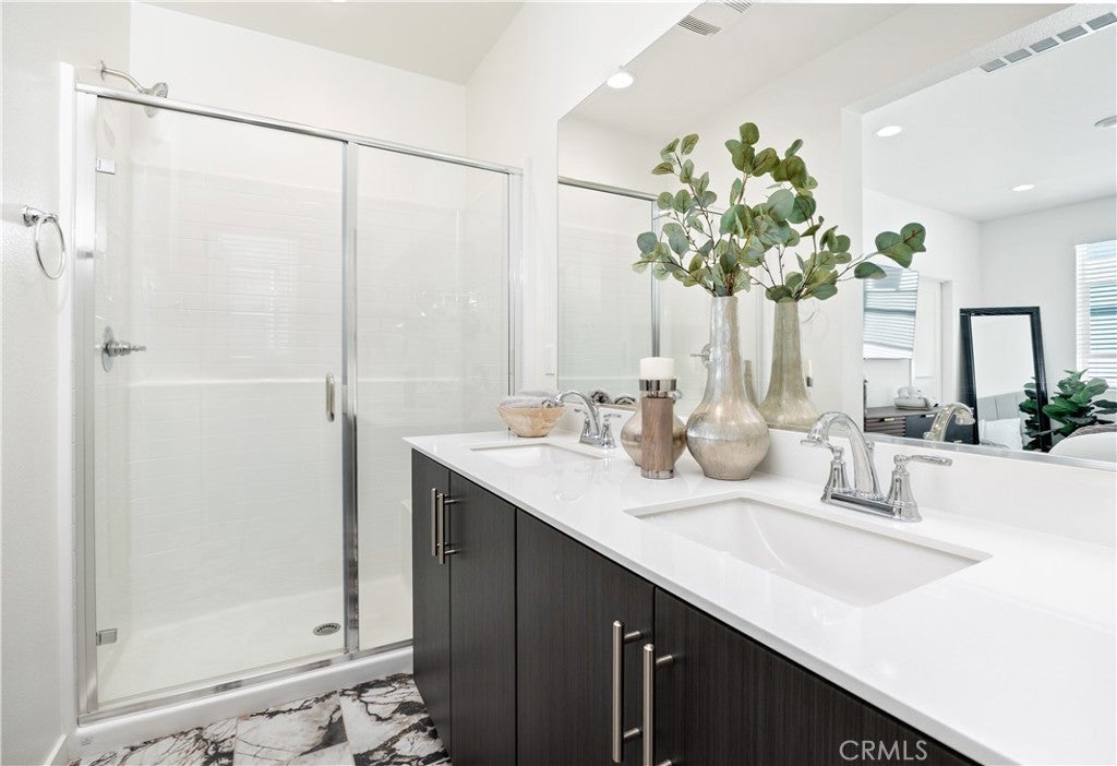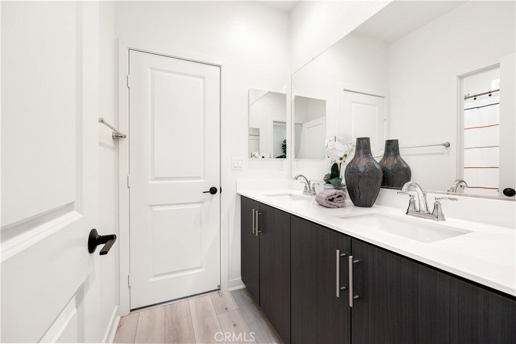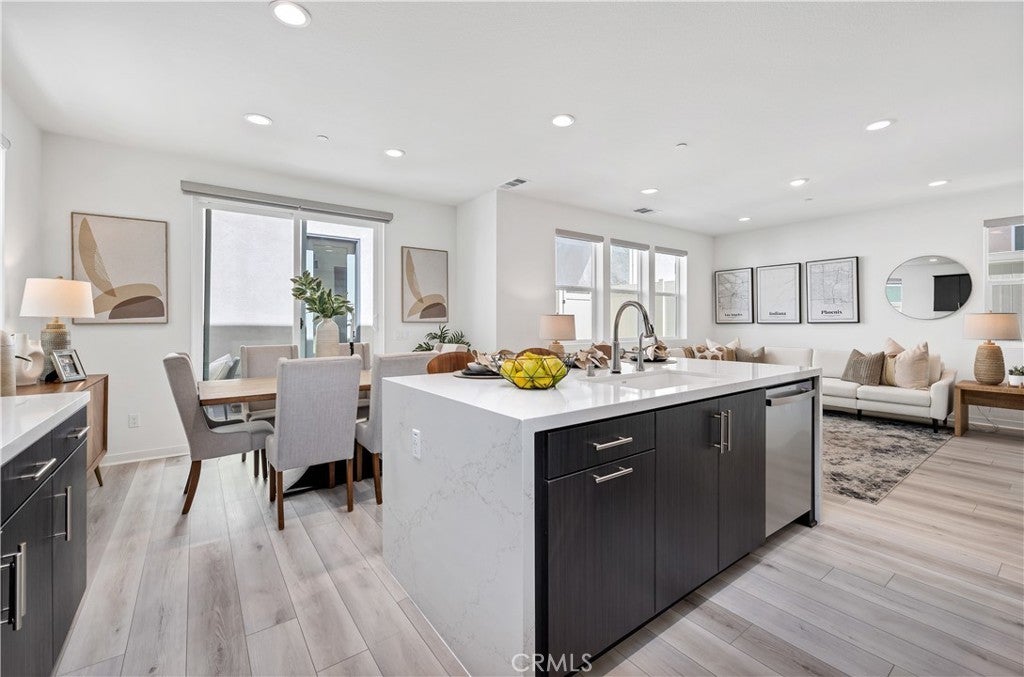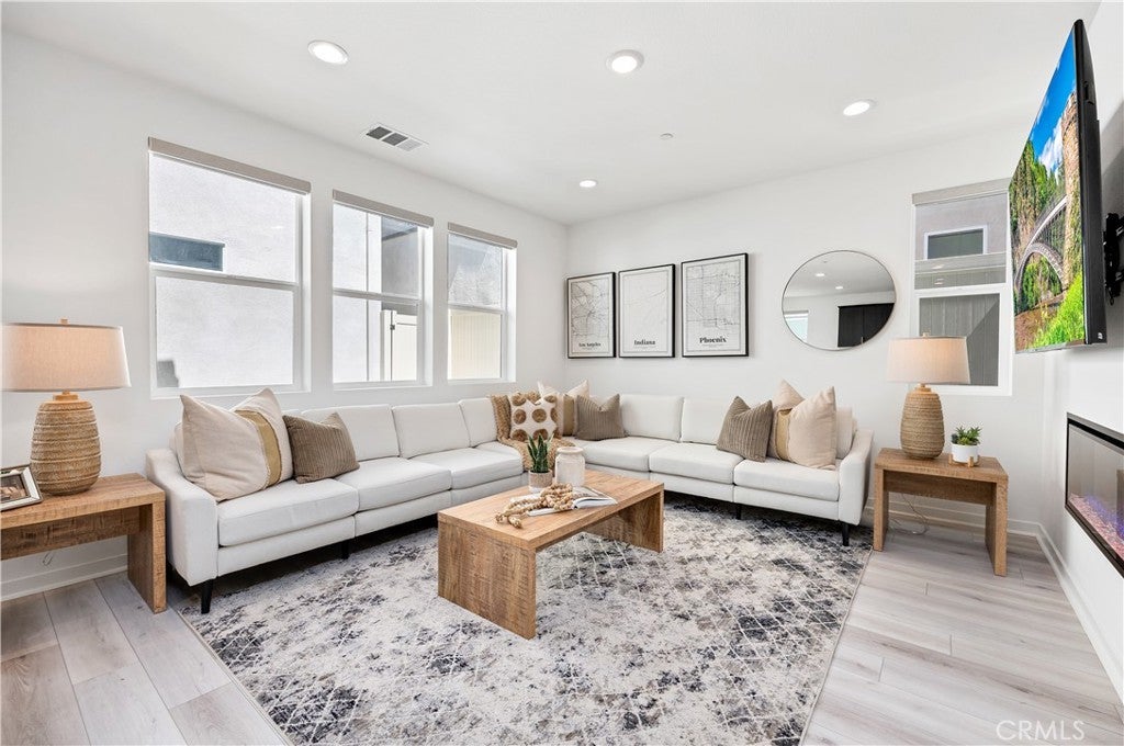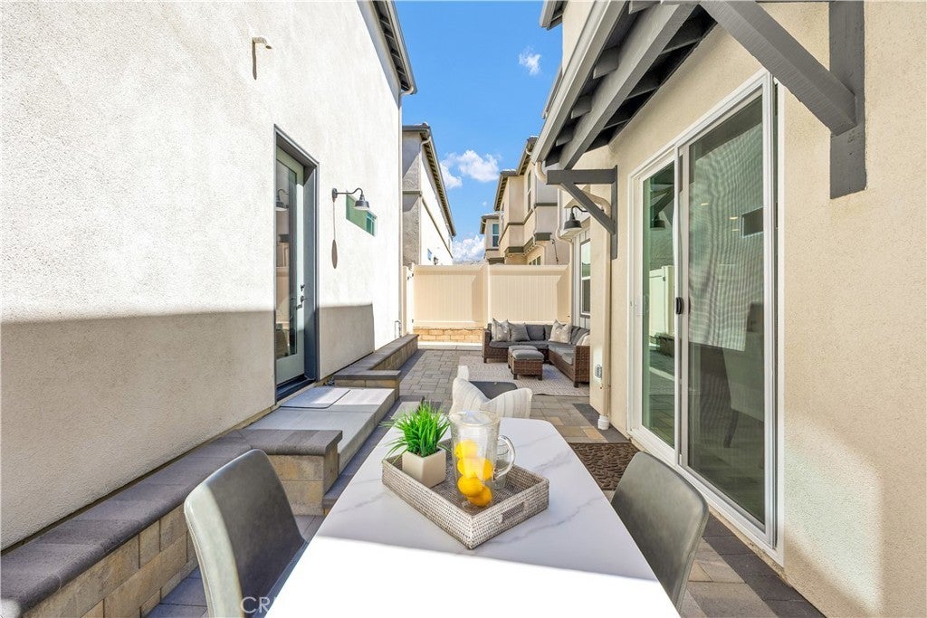 Welcome to this exceptional Blossom Plan 2 in Sommer’s Bend, offering one of the most sought-after layouts in the community- a true 4-bedroom design with a main-floor bedroom & full bath, plus 3 additional bedrooms & 2 baths upstairs. In a neighborhood where flexible floorplans are rare to the market, this is the one buyers wait for. Perfectly tucked into a peaceful corner location, this home sits equidistant between the resort-style pool & the sports park - close enough for convenience, yet quietly positioned away from traffic. With an abundance of adjacent visitor parking, this location offers both privacy & practicality. The heart of the home is anchored by a stunning waterfall quartz island — a true showpiece that elevates the entire living space. Luxury vinyl plank flooring flows throughout the main level, complemented by recessed lighting, a builder-upgraded fireplace creating warmth & ambiance, and custom WiFi/Bluetooth-controlled blinds that add both modern convenience & polish. Soft-close cabinetry & drawers, a new upgraded GE 3-rack dishwasher, 5-burner stove, and included GE refrigerator complete the thoughtfully designed kitchen. The main-floor bedroom & full bath provide flexibility for guests, multigenerational living, or a private office - dramatically increasing comfort, versatility & long-term livability. Upstairs, plush carpeting leads to a spacious primary suite featuring upgraded tile in the bath & a custom barn door that adds designer character. The upstairs laundry room showcases decorative tile, blending function with style. Two additional bedrooms & a full bath complete the upper level. Step outside to your private courtyard, enhanced with $12k in custom pavers, creating a welcoming outdoor space perfect for entertaining or relaxing. Additional highlights include PAID-OFF SOLAR & 240-volt EV charging in the garage. Four-bedroom homes in Sommers Bend - especially those with private outdoor space, premium upgrades, & a main-floor bedroom — are few & far between. This is more than a townhome. It’s a strategically positioned, highly upgraded residence in one of Temecula’s most desirable master-planned communities. Resort-style pools, fitness center, clubhouse, scenic trails, sports park, tot lots, dog parks, & a vibrant community calendar are all part of life here — just minutes from Temecula Wine Country, top-rated schools, dining & shopping. Opportunities like this don’t come often. Welcome home!
