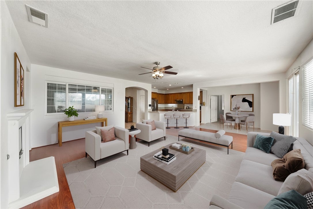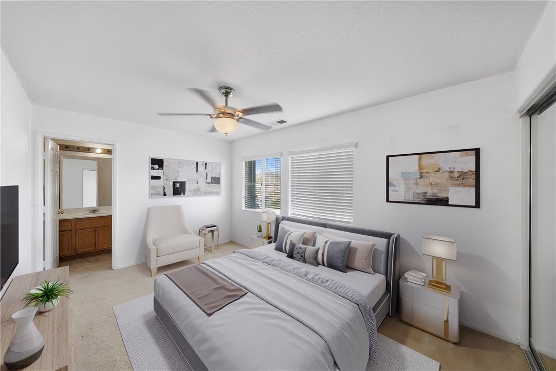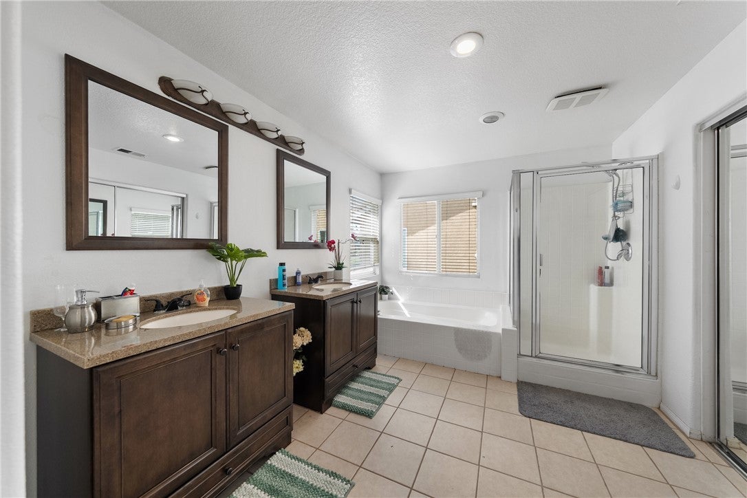 NEVER BE LATE TO YOUR TEE TIME AGAIN! Welcome to your extraordinary dream home, ideally nestled in the highly coveted Menifee Lakes community, where breathtaking panoramic views of the lush golf course and shimmering lake create a truly serene and picturesque backdrop. This expansive and beautifully appointed two-story residence offers 5 spacious bedrooms (with the potential for a 6th) and 4 well-designed bathrooms, encompassing approximately 2,916 square feet of refined yet comfortable living space. Step inside to discover a bright, airy, and thoughtfully designed open-concept floor plan that effortlessly blends elegance with everyday functionality. The gourmet kitchen serves as the heart of the home, showcasing abundant counter space, extensive cabinetry, and a massive center island—perfect for casual dining, meal prep, and entertaining on any scale. Flowing seamlessly from the kitchen is the inviting and oversized great room, where a cozy fireplace adds warmth and charm, creating the perfect ambiance for relaxing evenings or lively gatherings. Adjacent to the kitchen, a versatile game or playroom offers endless possibilities for fun, creativity, or additional entertaining space. The main level also features a generously sized two-person office, complete with elegant double French doors and an open view to the great room —ideal for remote work or a quiet retreat. A conveniently located downstairs bedroom and full bathroom provide the perfect setup for guests or multigenerational living. Upstairs, escape to the luxurious and tranquil primary suite, a true private retreat featuring dual vanities, a deep soaking tub, a separate walk-in shower, and an expansive walk-in closet. The upper level also includes a dedicated laundry room, three additional generously proportioned bedrooms, and a flexible office or den space that can easily be converted into a sixth bedroom to suit your needs. Adding even more versatility, the 3-car tandem garage includes a thoughtfully finished bonus room—complete with a ceiling fan—perfect for a private gym, studio, or hobby space. Ideally located just minutes from shopping, dining, top-rated schools, and convenient access to the 215 freeway, this home offers the perfect blend of peaceful suburban living and everyday convenience. And with NO HOA, you’ll enjoy added freedom and flexibility. This is a rare opportunity to own a truly exceptional home in one of Menifee’s most desirable communities—don’t let it slip away!