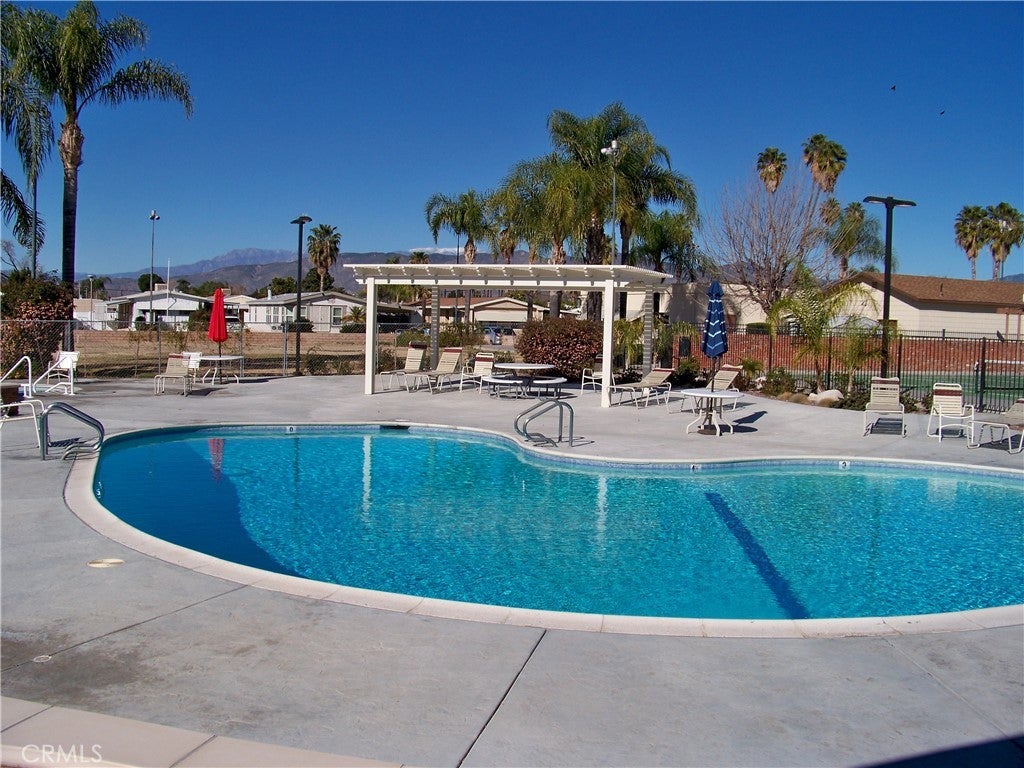 55+ manufactured home with land that is owned NO SPACE RENT. One bedroom, one bathroom with 2 enclosed additions that could possible be used as a second bedroom, plenty of storage and covered parking. New water heater and new flooring in the living room area next to the kitchen. Conveniently located directly across the street from the HOA clubhouse on a very quiet street. Please call Sierra Dawn South HOA for rules at 951/925-6502.