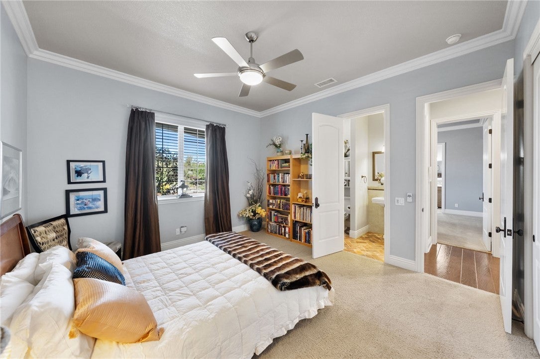 • Interior FeaturesCeiling Fan(s), Crown Molding, Separate/Formal Dining Room, Eat-in Kitchen, High Ceilings, In-Law Floorplan, Open Floorplan, Pantry, Recessed Lighting, All Bedrooms Down, Entrance Foyer, Main Level Primary, Multiple Primary Suites, Walk-In Pantry, Walk-In Closet(s)