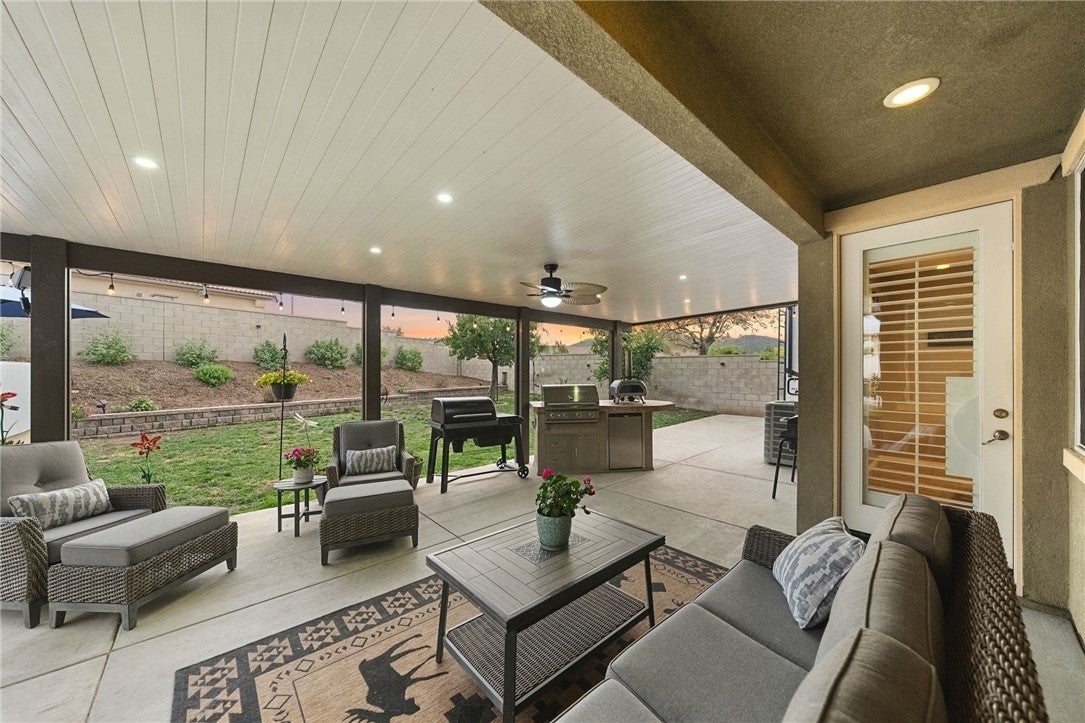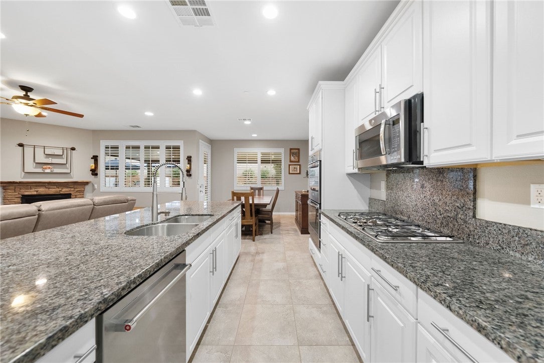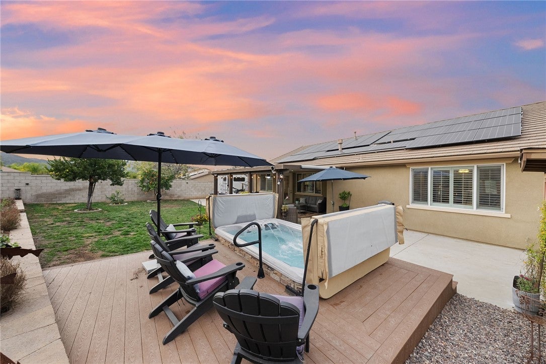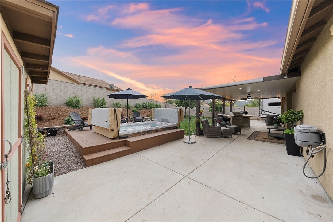 *Back on the market at no fault of the home, here is your second chance to make it yours!!* Welcome to this pristine maintained single-story 4 bedroom, 3 bathroom home with an attached **NEXT GEN SUITE+RV PARKING+PAID SOLAR** on a desirable corner lot! This immaculate property offers 4 spacious bedrooms and 3 bathrooms, plus an attached casita with its own private entrance with washer/dryer hookups, kitchen and private suite making it perfect for guests, extended family, rental potential, or a private office space. Inside, you’ll find neutral tones, floor throughout (no carpet!), elegant shutters and a bright, open layout that create a warm and inviting atmosphere. The home also features a versatile bonus room, ideal as a home office, playroom or additional bedroom. The ample kitchen is designed for both everyday living and entertaining, featuring stainless steel appliances, generous counter space, an oversized island and abundant cabinetry. The living room features a cozy fireplace making it perfect place to relax or gather with family. The primary suite offers a relaxing retreat with a well-appointed bathroom and comfortable space to unwind. Step outside to enjoy the alumawood patio complete with an outdoor kitchenette and swimming spa, creating the perfect setting for entertaining or relaxing year-round. Additional highlights include RV parking, a 2-car garage with plenty of storage cabinetry, and fully paid solar, offering both convenience and energy efficiency. This home truly combines comfort, versatility, and pride of ownership in a fantastic location minutes away from the 15 freeway and shopping! Make your appointment today!