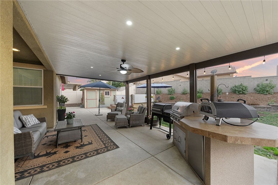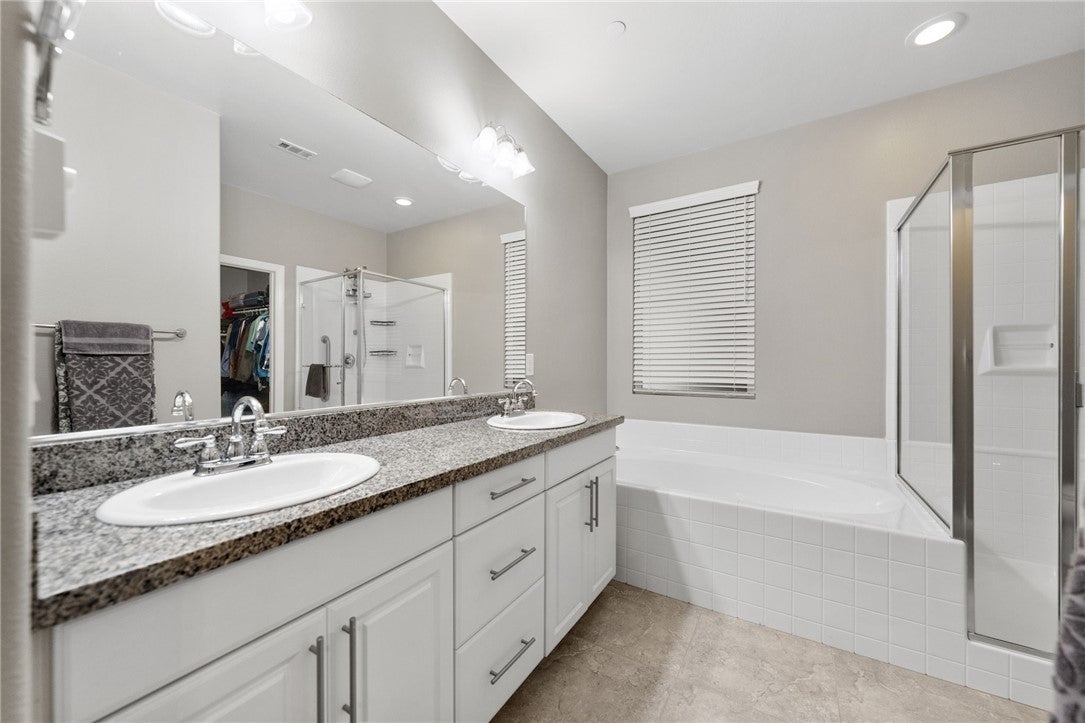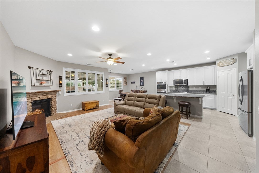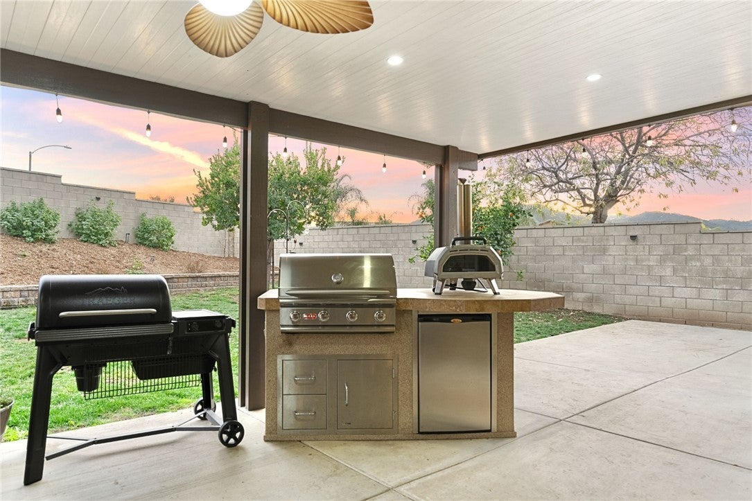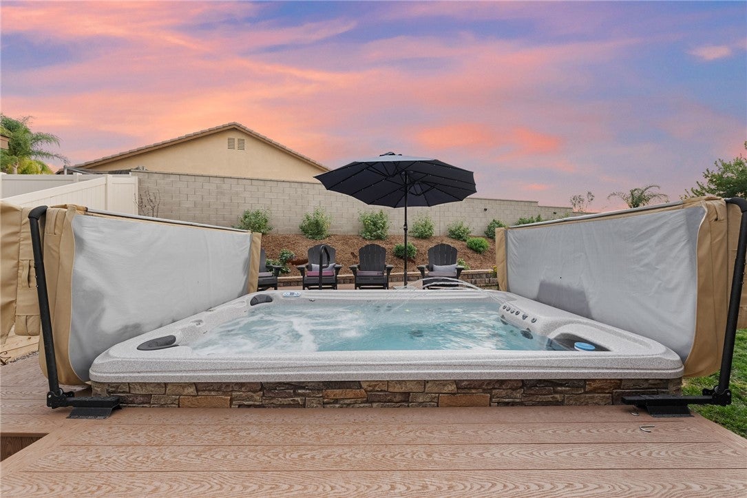 *Back on the market at no fault of the home, here is your second chance to make it yours!!* Welcome to this pristine maintained single-story 4 bedroom, 3 bathroom home with an attached **NEXT GEN SUITE+RV PARKING+PAID SOLAR** on a desirable corner lot! This immaculate property offers 4 spacious bedrooms and 3 bathrooms, plus an attached casita with its own private entrance with washer/dryer hookups, kitchen and private suite making it perfect for guests, extended family, rental potential, or a private office space. Inside, you’ll find neutral tones, floor throughout (no carpet!), elegant shutters and a bright, open layout that create a warm and inviting atmosphere. The home also features a versatile bonus room, ideal as a home office, playroom or additional bedroom. The ample kitchen is designed for both everyday living and entertaining, featuring stainless steel appliances, generous counter space, an oversized island and abundant cabinetry. The living room features a cozy fireplace making it perfect place to relax or gather with family. The primary suite offers a relaxing retreat with a well-appointed bathroom and comfortable space to unwind. Step outside to enjoy the alumawood patio complete with an outdoor kitchenette and swimming spa, creating the perfect setting for entertaining or relaxing year-round. Additional highlights include RV parking, a 2-car garage with plenty of storage cabinetry, and fully paid solar, offering both convenience and energy efficiency. This home truly combines comfort, versatility, and pride of ownership in a fantastic location minutes away from the 15 freeway and shopping! Make your appointment today!