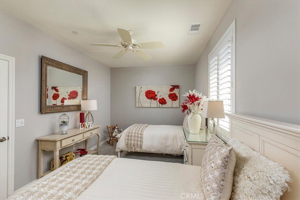 Welcome to this Beautifully Appointed and Highly Upgraded Home in the sought out community of Terracina, located in Beautiful South Temecula! This executive-style 4-bedroom residence is truly move-in ready, and shows just like a Model with all of it's upgrades and finishing touches. Step inside to discover a thoughtfully designed interior featuring high-end upgrades, modern finishes, upgraded flooring throughout, with spacious living areas perfect for both everyday living and entertaining. Open concept living and kitchen area with large expansive center island, walk in pantry, large open gathering area with built in fireplace, remote privacy shades, upgraded guest powder room, formal dining area and optional open entertaining room that is currently a music room. The Welcoming and Beautiful Primary Suite offers it's own private rear door, beautiful touches with plantation shutters, beautiful en-suite bathroom with separate tub and shower, dual sinks, private water closet and a spacious walk in closet. Down the hall are 2 additional spacious bedrooms, with a second full bathroom with double sinks and tub/shower room, large linen cabinets, walk in laundry room with built in shelving and storage. On the opposite side of the house is a beautifully appointed separate bedroom, with en-suite full bath with a walk in closet, perfect for guests, in laws, or live in help. This home shows Pride of Ownership throughout. The Exterior is just as impressive, with professionally landscaped grounds that create a private, resort-like setting. Enjoy evenings around the custom built-in fire pit, enhanced by a tranquil water feature—ideal for relaxing or hosting guests. Additional upgrades include rain gutters, outdoor speakers, full concrete on both sides of home and privacy gate, professional landscaping, and meticulous attention to detail throughout the property. Property has leased, builder installed solar. Located within a highly sought-after neighborhood and served by top-rated schools including Great Oak High, this home offers the perfect blend of comfort, style, and convenience. Enjoy the many neighborhood amenities such as Golfing, Parks, Biking, Hiking and Much More! Just minutes from Temecula Wine Country, Gallaway Downs Event Center, Pechanga Casino, Old Town Temecula, Shopping, Dining, Several Lakes, Parks and Recreational areas and more!
