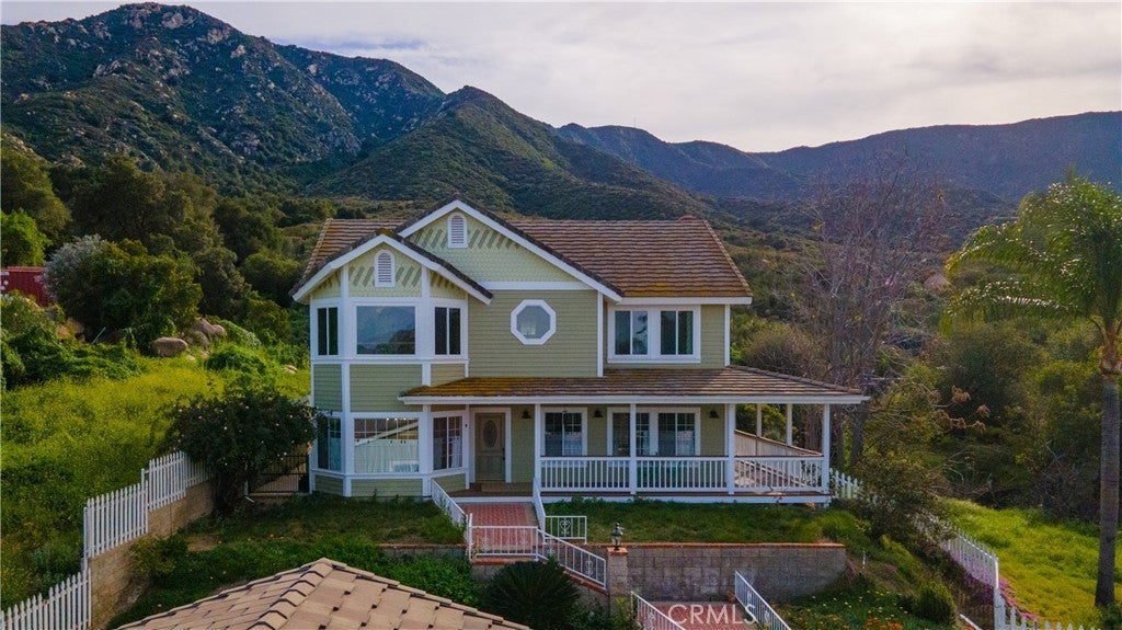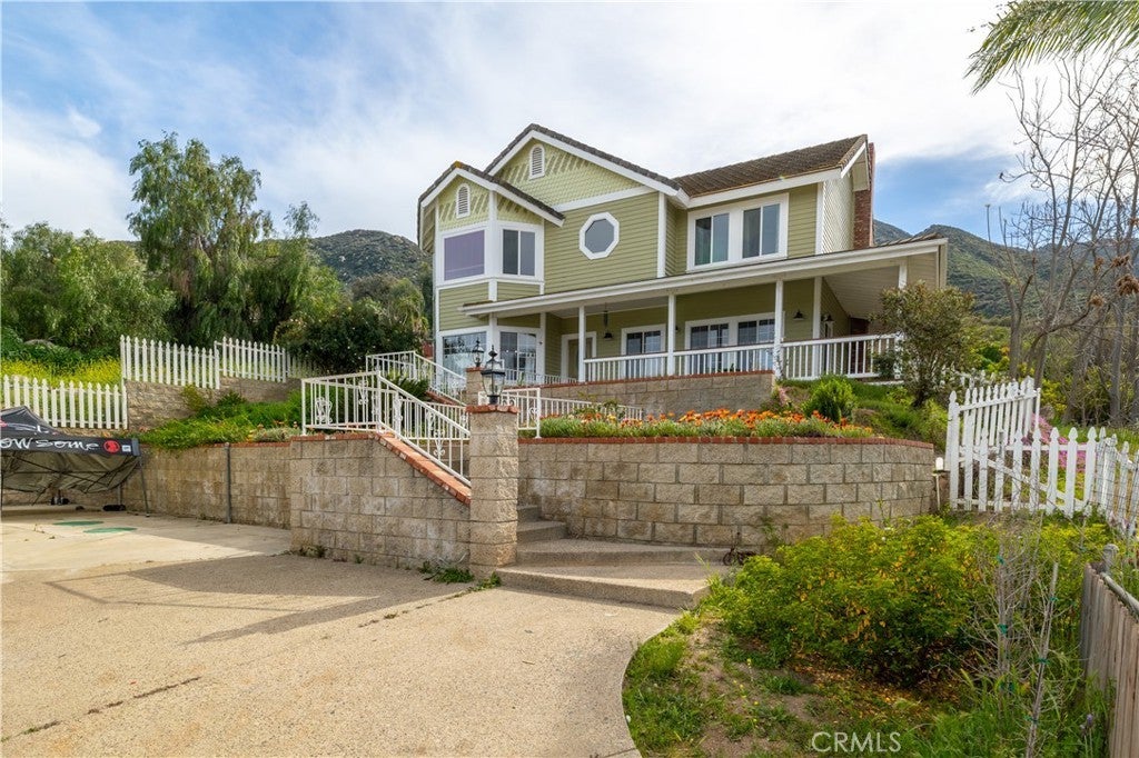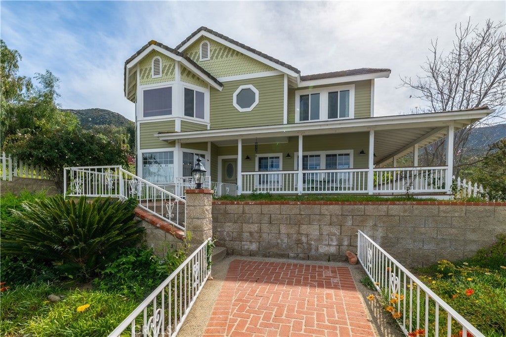 Welcome to this custom-built home in the desirable Country Club Heights of Lake Elsinore. This beautiful 3-bedroom, 2-bathroom home is ready for its new owner and offers stunning sunrise and panoramic lake views from every level. Inside, you’ll find new carpet, new flooring, fresh paint, and brand new windows, giving the home a clean and updated feel throughout. The home also features a convenient central vacuum system, adding ease and efficiency to everyday cleaning. Upstairs features three bedrooms, including a beautiful primary suite with incredible views, an upgraded primary shower, and a relaxing jacuzzi tub. The kitchen is equipped with upgraded appliances including a newer oven, stovetop, microwave, trash compactor, dishwasher, and refrigerator, making it both functional and convenient for everyday living. Enjoy the peaceful surroundings from the sweeping front porch seating area, perfect for taking in the lake views and morning sun. The .98-acre lot offers endless possibilities for outdoor living, expansion, or customization. The property also features several mature citrus trees, including large blood orange and tangerine trees, along with additional citrus varieties. Lime trees are located near the front gate, adding charm and fresh homegrown fruit to the property. A standout feature of this property is the upgraded detached four-car garage, ideal for anyone needing a large workshop space. The garage includes a full bathroom and work table, making it perfect for projects, storage, or a fully functional shop. This property offers space, views, and versatility — don’t miss this incredible opportunity in Lake Elsinore