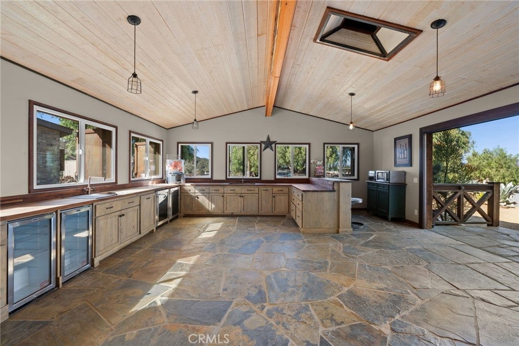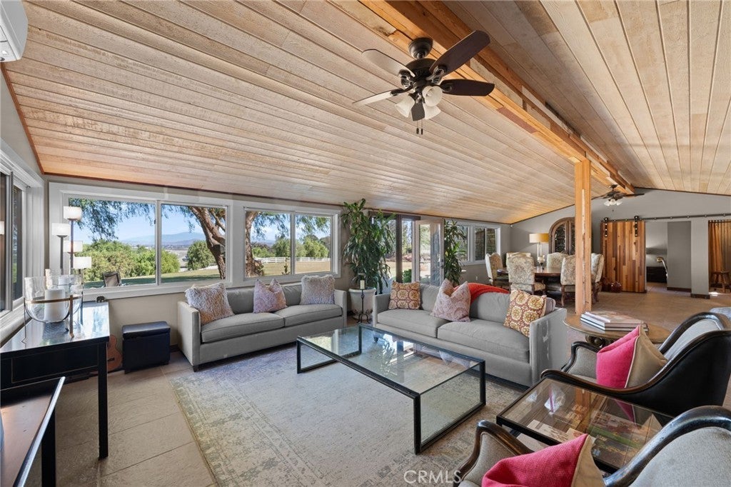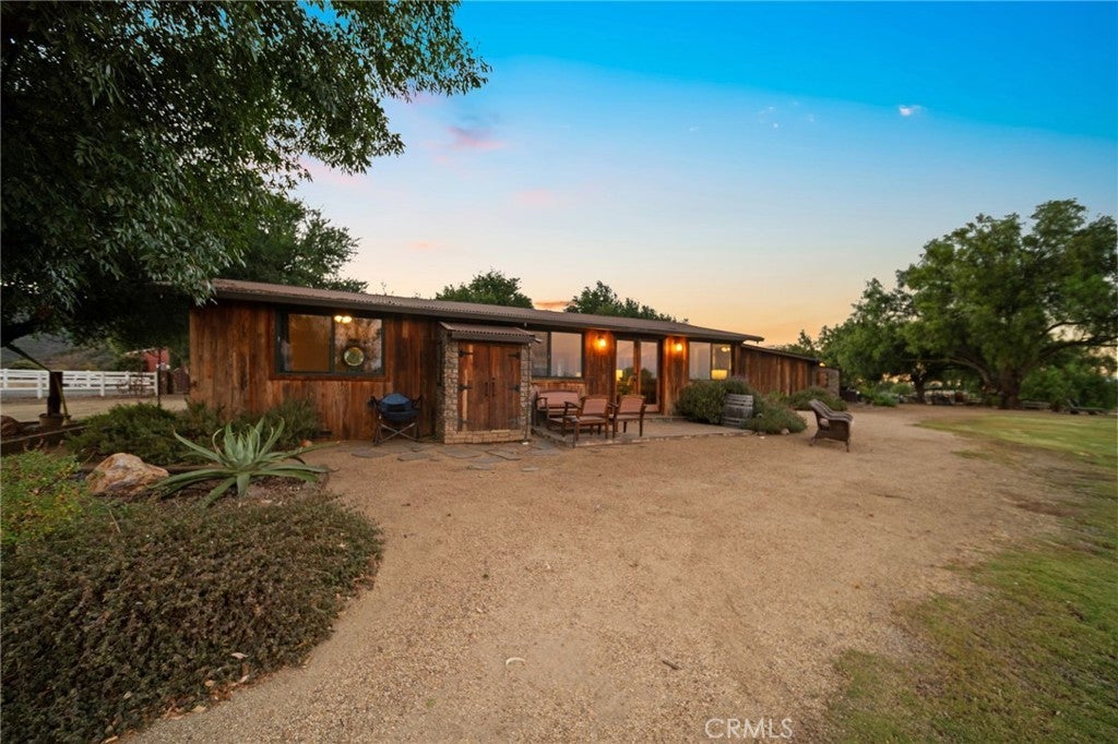 Summerland Ranch... where the views reign supreme. Set on 10+ acres on Murrieta’s coveted West Side, this private retreat blends outdoor living, agriculture, and functionality. Ideal for equestrians, gardeners, homesteaders, and livestock, the property features 71 producing orange trees along with lemon, avocado, guava, fig, apple, pear, loquat, and pomegranate trees, creating a thriving orchard setting. The property includes four structures: two charming cottages each with one bedroom and one bathroom, flagstone patios, cedar siding, corrugated metal accents, tongue-and-groove ceilings, barn doors, tile flooring, mini-split systems, dual pane vinyl windows, and individual water heaters. Additional improvements include a finished open air barn with 2 roll-up doors, stained wood paneling, metal shutters, and stone accents, plus a 5,000 sq ft fully insulated Empire Steel building (50'x100') with loft storage and (2)-16’x16’ and 16’x12’ roll-up doors. Fully fenced with 5-ft vinyl rail and woven horse fencing. Utilities include 400-amp electrical service, private septic, private well supported by two elevated 5,000-gallon water storage tanks, and a 4” fire line at the entrance. Property is all-electric with no propane or natural gas. Extensive usable acreage offers potential for expanded equestrian facilities, a family compound, second home, retreat, or additional agricultural use. All structures are permitted and completed. Property is also listed as vacant land listing ID is: SW26056405 Showings by appointment only. Red building photo has been digitally edited to remove items to show full size and potential use/storage.