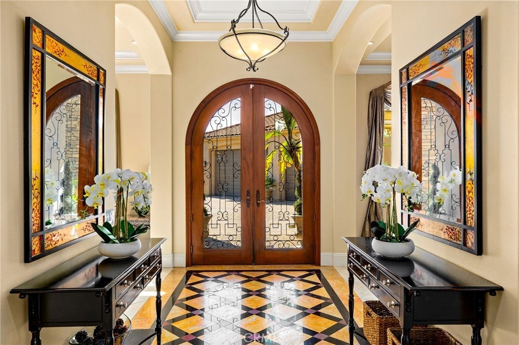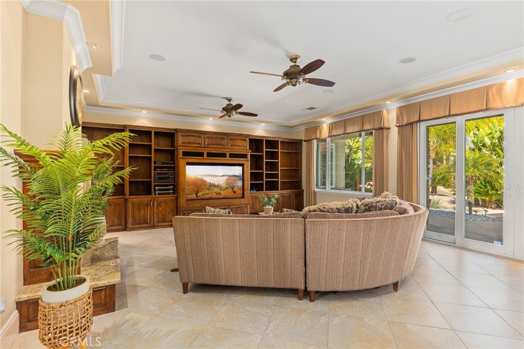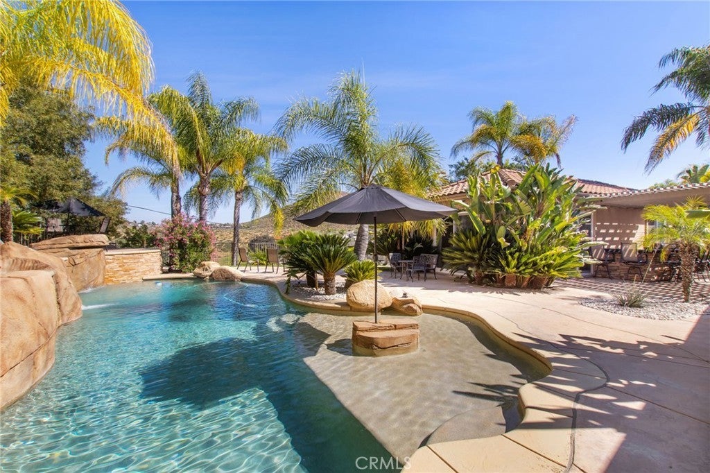 Welcome to 22928 San Joaquin Drive East in the gated community of Canyon Lake. Situated on an expansive half acre lot, this impressive single story home offers approximately 4,700 square feet with 4 bedrooms and 6 bathrooms. The home features a grand iron and glass entry door that opens to spacious living areas with travertine flooring, custom inlays, and high ceilings throughout. The kitchen is designed for both everyday living and entertaining with granite countertops, stainless steel appliances including Thermador cooking equipment, a built in refrigerator, and extensive cabinetry. The backyard offers a private pool and generous outdoor space ideal for relaxing or hosting gatherings. A detached casita provides flexible space for guests, extended family, or a home office. Car enthusiasts will appreciate the rare 8 car garage, a unique feature within Canyon Lake. The property also includes paid solar and a large lot that provides privacy and room to enjoy outdoor living. Canyon Lake residents enjoy 24 hour gated security along with access to the private lake for boating and fishing, a golf course, clubhouse, parks, beaches, tennis, pickleball, and a variety of community events.