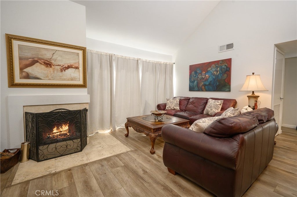 Welcome to the resort-style Le Parc community in Lake Forest! This beautifully designed home features a highly sought-after open floor plan with 3 bedrooms, 2 bathrooms, and approximately 1,123 square feet of living space, plus a balcony and private rooftop terrace. As you enter the main level, you're greeted by abundant natural light and soaring vaulted ceilings that create a bright, airy atmosphere. The great room showcases luxury vinyl flooring, a cozy fireplace, and sliding glass doors that lead to a private balcony with peaceful, tree-lined views. The kitchen features white cabinetry, a breakfast bar, and an open layout that flows seamlessly into the dining and living areas—perfect for everyday living and entertaining. The spacious primary suite includes a walk-in closet, while the secondary bedroom offers its own closet and direct access to a full bathroom—ideal for guests or roommates. A convenient stackable washer and dryer closet is also located on this level. Upstairs, you’ll find a versatile third room with a closet or office workspace and direct access to the rooftop terrace—an ideal space for entertaining, relaxing, or enjoying outdoor living. Residents of Le Parc enjoy well-maintained, resort-style amenities including three pools, and multiple spas. The home is within walking distance to parks and sports courts, and just a short drive to dining, shopping, entertainment, and easy access to the 5 and 241 freeways. This is a wonderful opportunity to enjoy comfort, convenience, and resort-style living in a prime location!