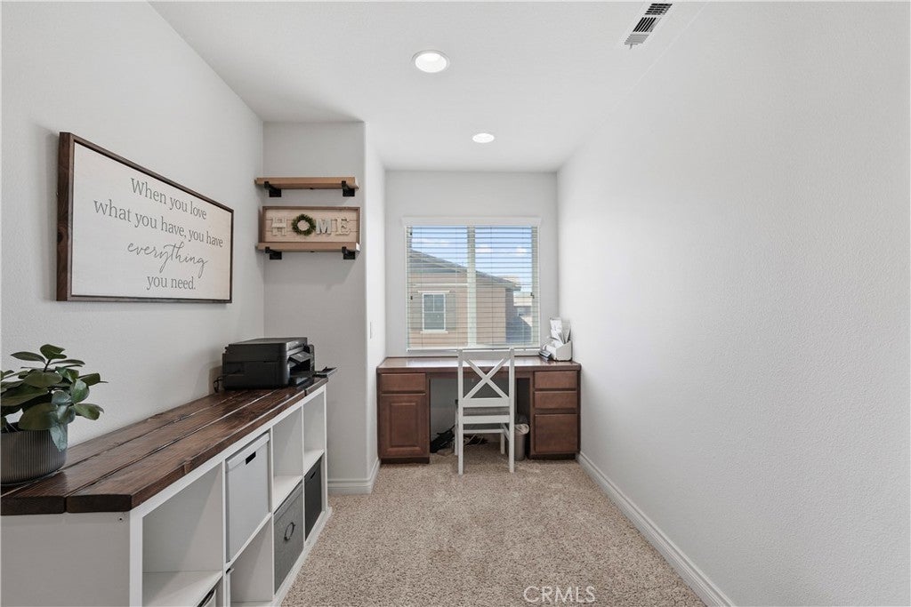 Welcome to 35628 Hawkeye St in the prestigious Spencer's Crossing community! This stunning 5-bedroom, 3-bathroom home offers 2,860 sq ft of thoughtfully designed living space on a generous 0.19-acre lot, complete with exclusive access to community pool and clubhouse amenities. **Key Features:** • SPENCER CROSSING COMMUNITY - Enjoy resort-style amenities including sparkling pool and clubhouse • Convenient downstairs bedroom with full bath - perfect for guests or multi-generational living • TWO EV charging outlets in the three-car garage - future-ready for electric vehicles • Energy-efficient whole house fan for optimal climate control • Stunning chef's kitchen with massive center island, white shaker cabinetry, and quartz countertops • Stainless steel appliances including French door refrigerator with water/ice dispenser • Spacious family room seamlessly connected to kitchen - ideal for entertaining • Dedicated home office/flex space with built-in desk and storage • Primary suite retreat with a walk-in closet and a luxurious ensuite and vanity • Beautiful luxury vinyl plank flooring throughout main areas • Professionally landscaped front yard with mature hedges • Move-in ready with designer touches throughout This exceptional home combines modern luxury with sustainable living in one of Murrieta's most desirable communities. The open floor plan, premium finishes, and community amenities create the perfect sanctuary for today's discerning buyer. Don't miss this rare opportunity!
