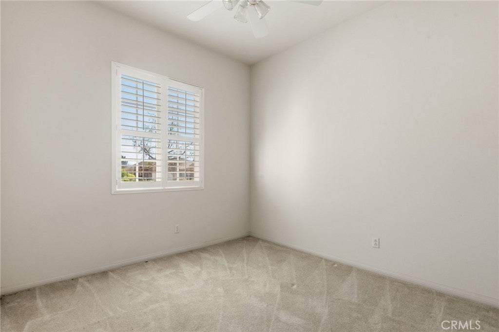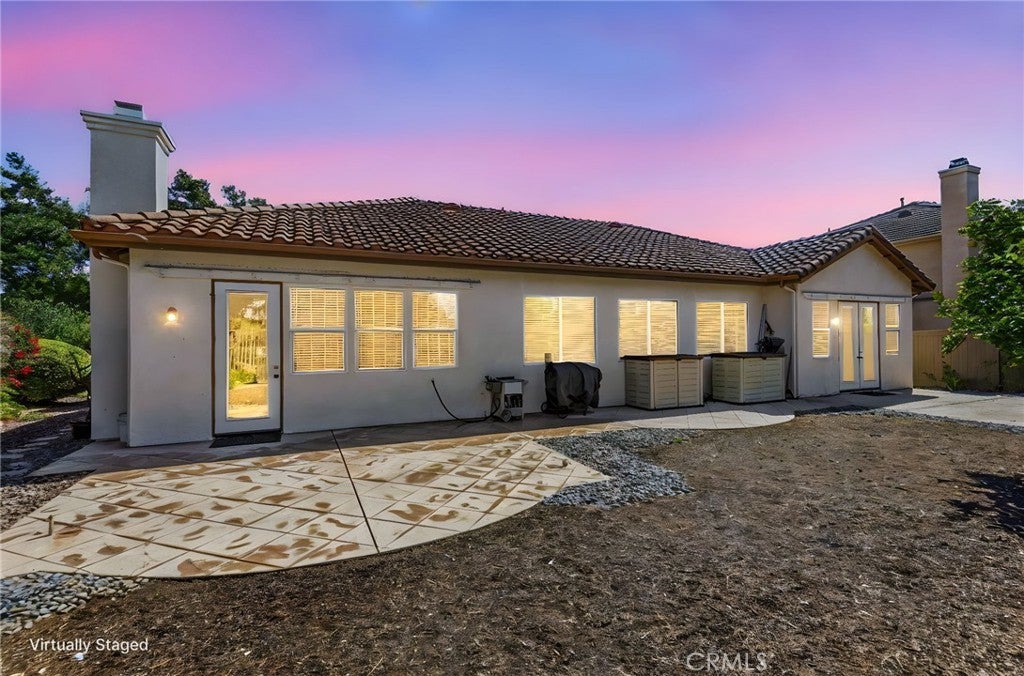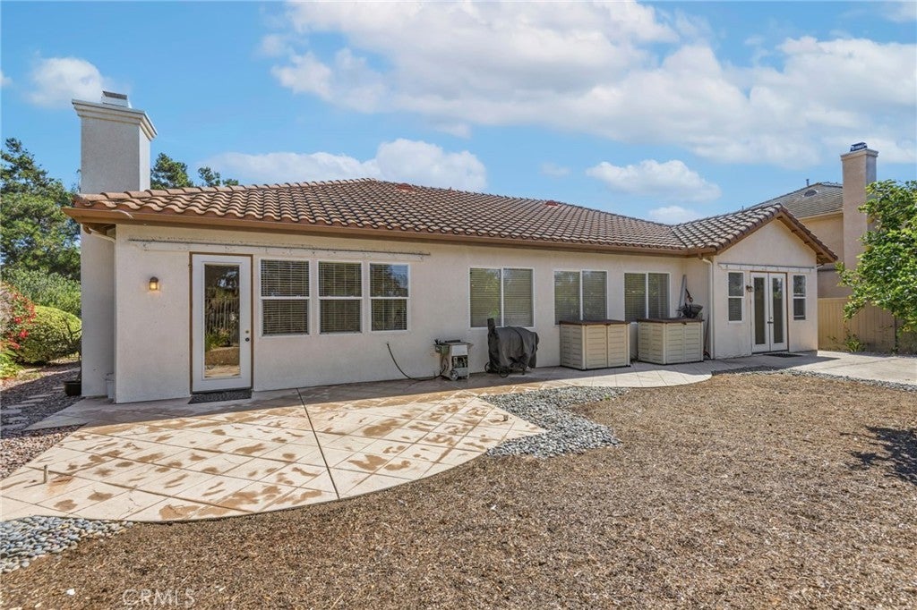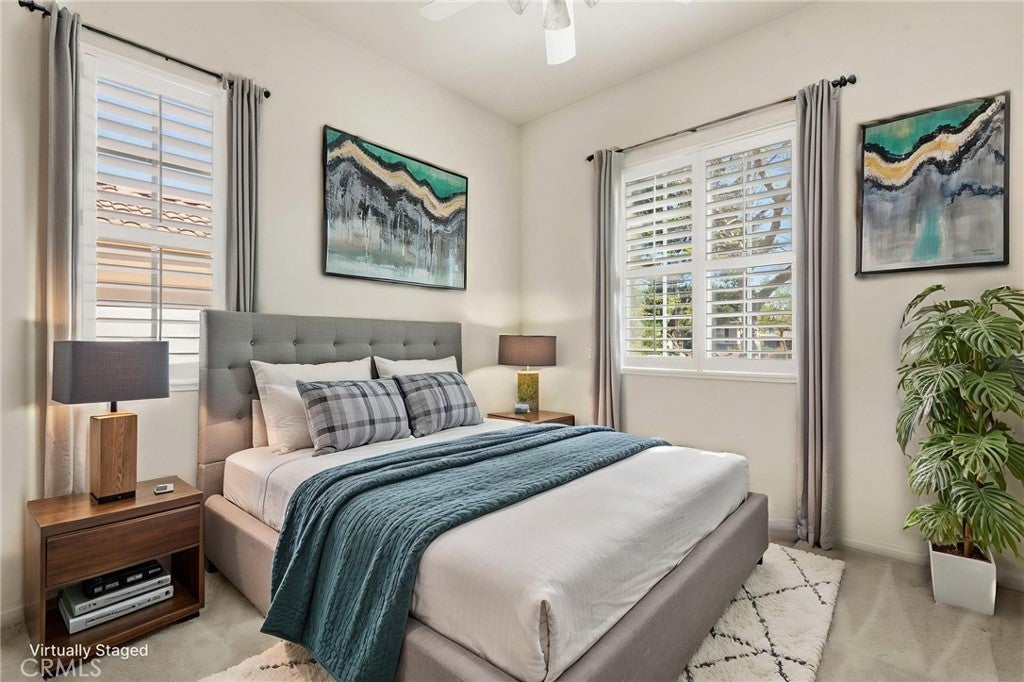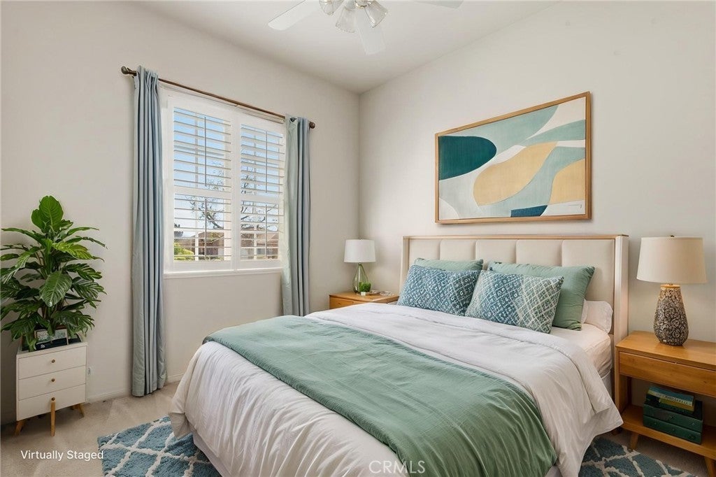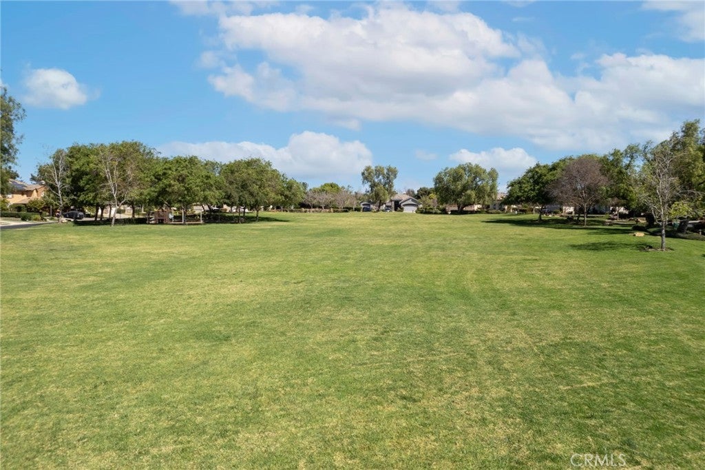 Welcome to this gorgeous single-story home located on a desirable single-loaded street in the gated community of Peppertree Park, directly across from a lush grassy park. With beautifully landscaped front and backyards and a bright, open layout, this home offers both comfort and curb appeal. Inside, the light-filled interior features formal living and dining areas just off the entry, enhanced by elegant wood shutters on all front windows. The spacious open-concept kitchen and family room create the perfect gathering space. The kitchen is equipped with rich wood cabinetry, granite countertops, a tiled backsplash, double ovens, and a large center island with bar seating. The family room is warm and inviting with a cozy fireplace and direct access to the backyard patio. The primary suite is a peaceful retreat, complete with doors to the patio, a walk-in closet, and an en-suite bathroom featuring dual sinks, a soaking tub, and a separate shower. Go outside to enjoy the private backyard with a patio, mature apple and lemon trees, and tranquil greenery views—perfect for relaxing or entertaining. Additional highlights include a 3-car direct-access garage, Newer HVAC (2024) and a prime location within Peppertree Park, a gated community offering walking paths, parks, a basketball court, and picnic areas. This home combines style, space, and an exceptional setting in a highly sought-after neighborhood.