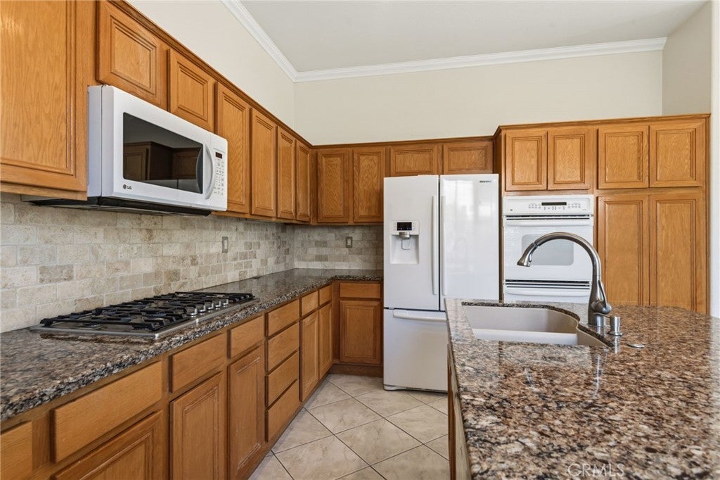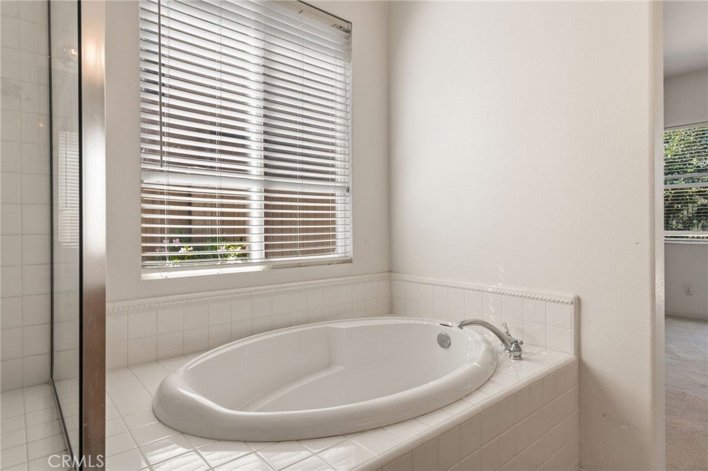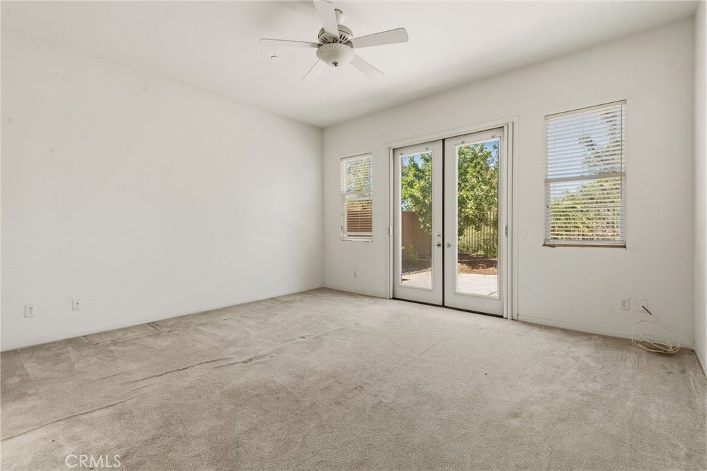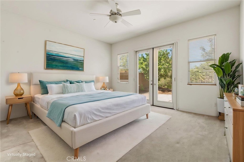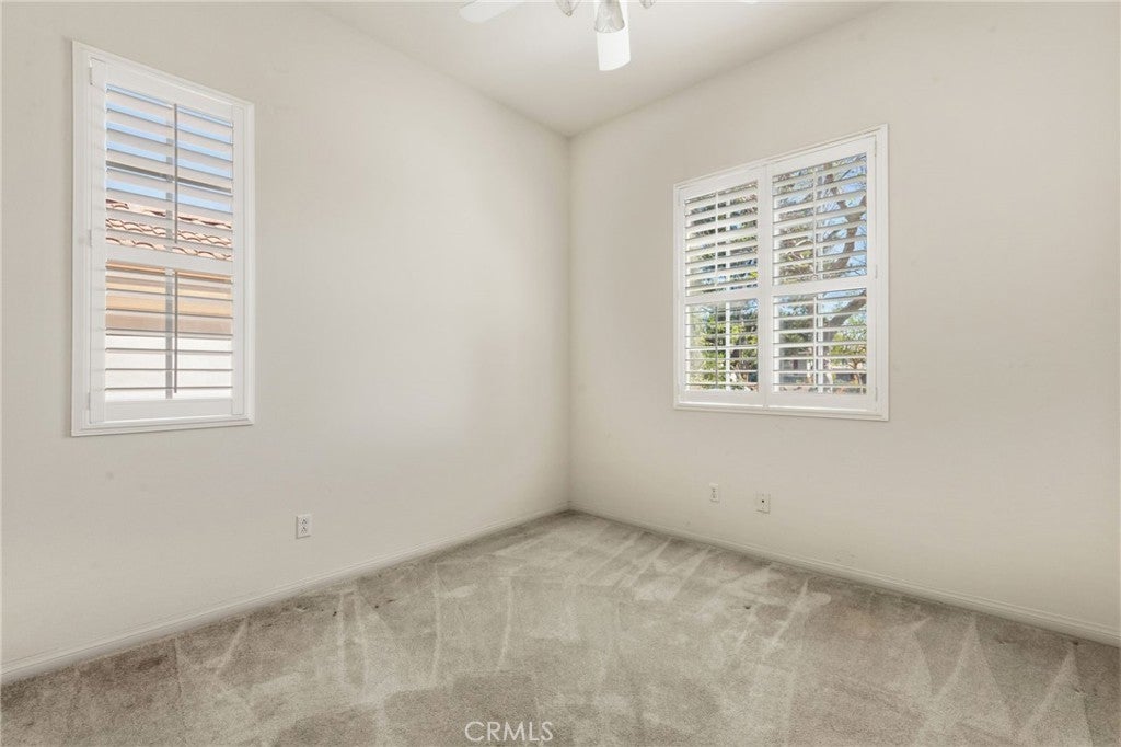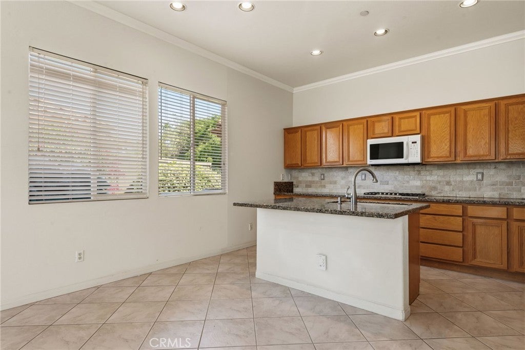 Welcome to this gorgeous single-story home located on a desirable single-loaded street in the gated community of Peppertree Park, directly across from a lush grassy park. With beautifully landscaped front and backyards and a bright, open layout, this home offers both comfort and curb appeal. Inside, the light-filled interior features formal living and dining areas just off the entry, enhanced by elegant wood shutters on all front windows. The spacious open-concept kitchen and family room create the perfect gathering space. The kitchen is equipped with rich wood cabinetry, granite countertops, a tiled backsplash, double ovens, and a large center island with bar seating. The family room is warm and inviting with a cozy fireplace and direct access to the backyard patio. The primary suite is a peaceful retreat, complete with doors to the patio, a walk-in closet, and an en-suite bathroom featuring dual sinks, a soaking tub, and a separate shower. Go outside to enjoy the private backyard with a patio, mature apple and lemon trees, and tranquil greenery views—perfect for relaxing or entertaining. Additional highlights include a 3-car direct-access garage, Newer HVAC (2024) and a prime location within Peppertree Park, a gated community offering walking paths, parks, a basketball court, and picnic areas. This home combines style, space, and an exceptional setting in a highly sought-after neighborhood.