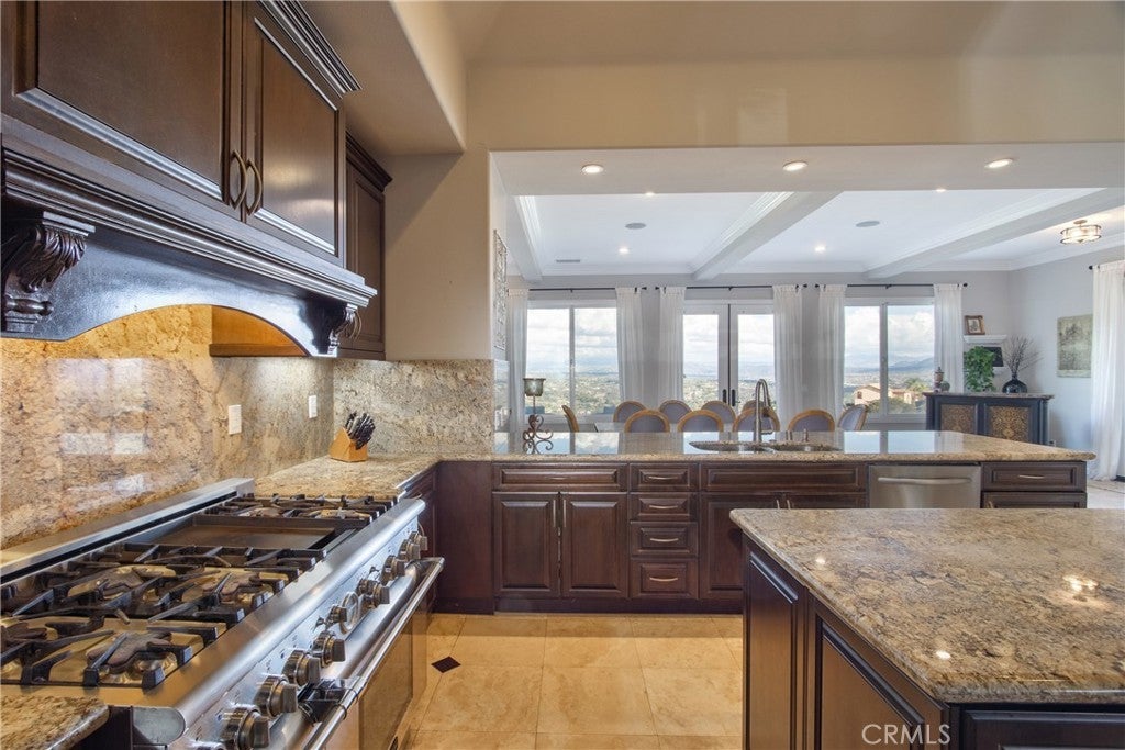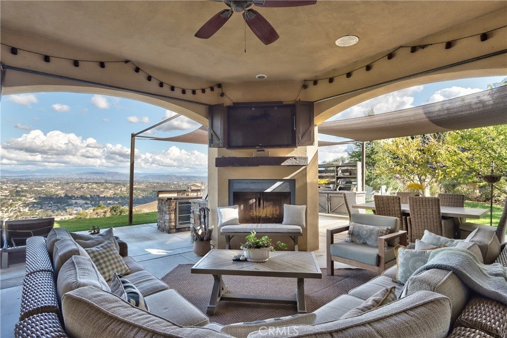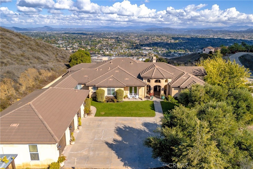 COUNTRY LIVING WITH INCREDABLE VIEWS ONLY 8 MINUUES TO THE FREEWAY, SHOPPING AND RESTAURANTs AND 15 MINUTES TO THE WINERIES. Beautiful 4 Bedroom 3-1/2 Bath 4,386 sq. ft. in the prestigious De Luz community of Temecula offers a light & bright home with an open feel. Breathtaking views city lights, views of Big Bear, Idyllwild & Palomar Mountain. Step through the beautiful double front doors, you'll notice the entire home is filled with natural light. Featuring elegant travertine flooring, a formal living and dining area with ceilings over 10 feet high. The home offers tall ceilings throughout including 8 foot doors throughout, wide hallways, 5 inch base boards, crown molding, beautiful coffered and tray ceilings. A spacious primary suite boasts 12-foot ceilings, French doors to the backyard, a luxurious bath with a walk-in shower, soaking tub, sitting area, large walk in closets and custom wood cabinetry. The gourmet kitchen is truly a chef’s delight, featuring granite countertops, custom wood cabinetry, stainless steel built-in KitchenAid refrigerator, dishwasher, double wall ovens & microwave including a professional grade Thermador stovetop on natural gas, a very rare find in De luz, wine fridge, a large island, and a walk-in pantry. The family room is open to the kitchen and is equally bright, featuring a cozy fireplace and a flexible adjoining room that can serve as a media or game room. The kitchen, eating area and family room are lined with windows to enjoy the views. The 3 secondary bedrooms are very spacious with two of the bedrooms offering walk in closets and a jack in jill bathroom. The third bedroom boasts a private ensuite bathroom and bedroom with private entrance and patio area would be a perfect multi-generational living. Outside is the perfect with an relaxing entertaining area with a TV, & fireplace. Enjoy a large, built-in barbecue entertaining area with a flat top gill, built-in BBQ, sink and sitting area. An outdoor fire pit, providing the perfect setting to take in those magnificent mountain & city views. With travertine flooring through out the home and new luxury vinyl plank flooring in the bedrooms, enjoy no carpet in the home. The oversized three-car garage is extra deep and could be converted into a ADU. This home is a perfect blend of elegance and functionality. There is room to build another garage, ADU and pool. Home is private and perfect location to enjoy walks or biking with no car traffic.