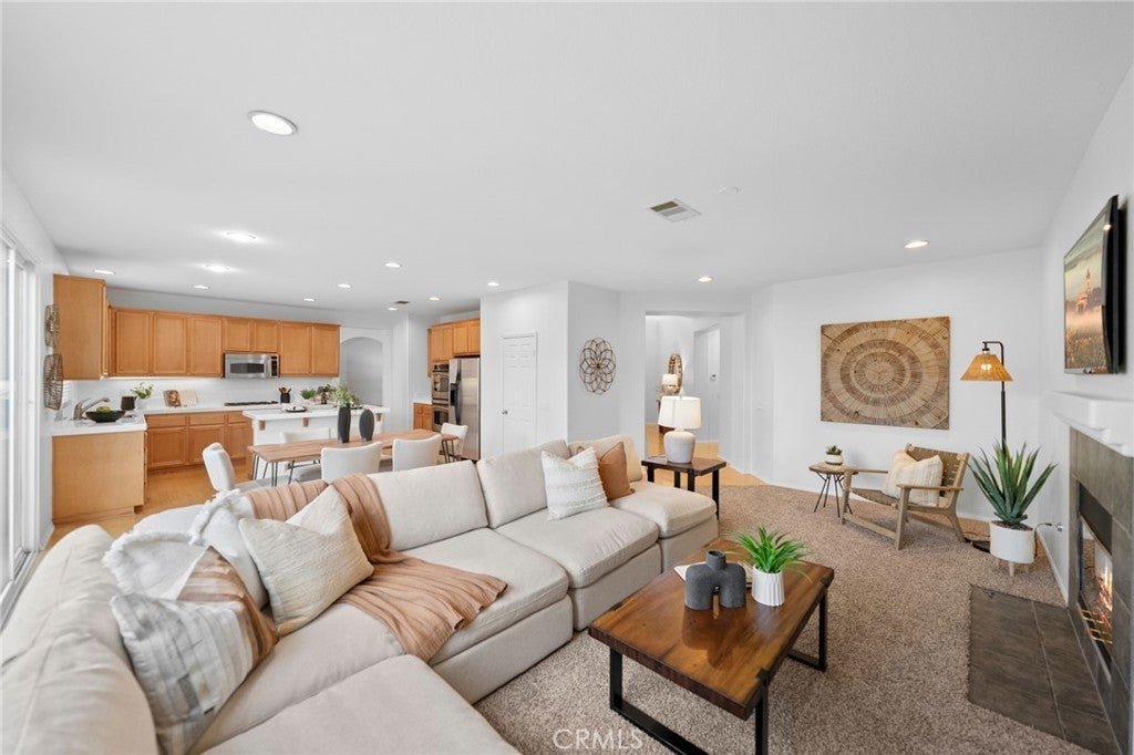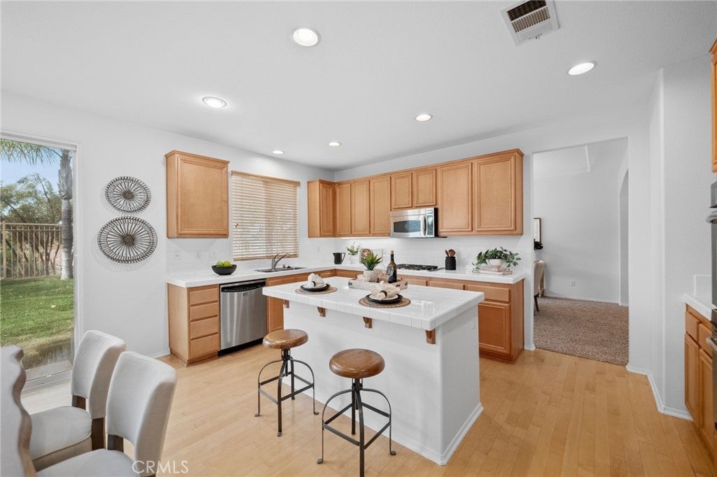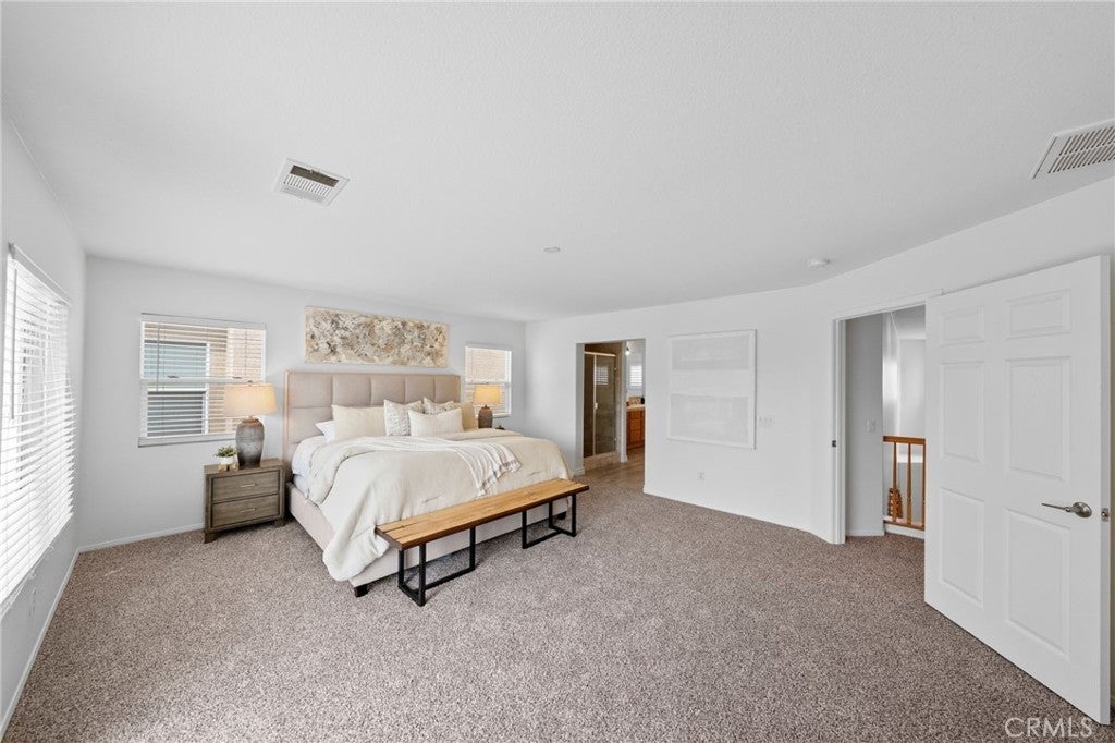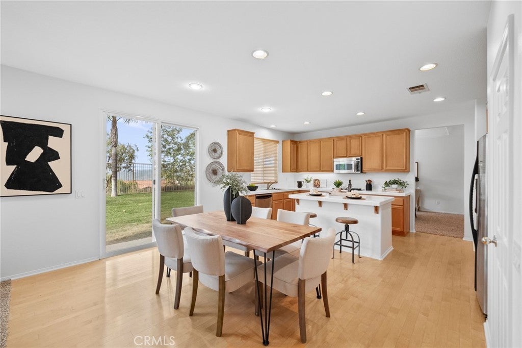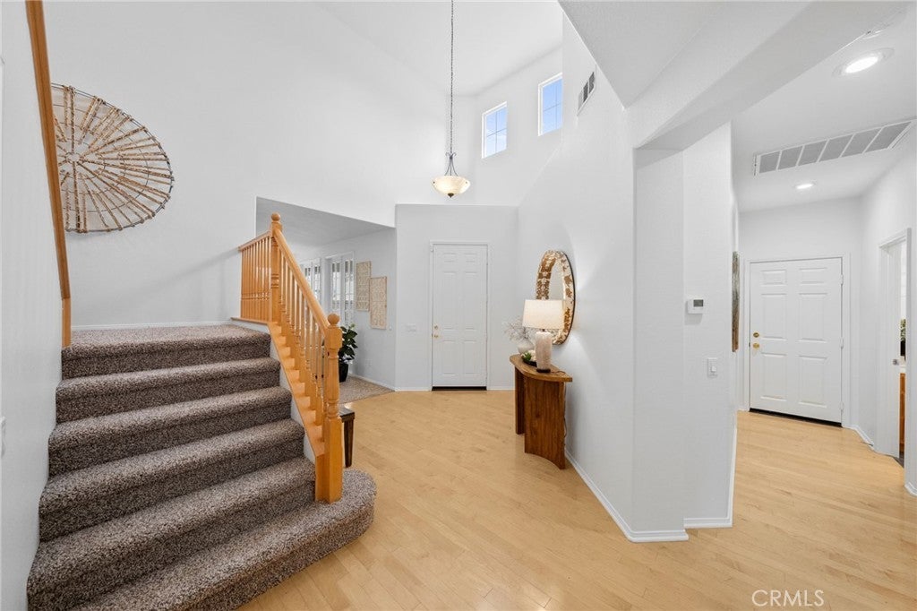 Tucked at the end of a quiet cul-de-sac w/in the prestigious, guard-gated community of Greer Ranch, this beautifully refreshed 4-BR, 3-BA residence offers an exceptional blend of space, natural light, & serene hillside living. From the moment you arrive, fresh exterior paint & a charming covered front porch create a warm & inviting first impression-perfect for enjoying peaceful mornings. Inside, soaring 2-story ceilings & an abundance of natural light set the tone, complemented by freshly painted interiors & rich engineered hardwood flooring that flows seamlessly through the entry & kitchen. The formal living & dining rooms are framed by floor-to-ceiling windows & finished w/ brand-new carpet, creating an elegant setting for both everyday living & entertaining. The dining room opens effortlessly to the backyard, offering a true indoor-outdoor lifestyle. At the heart of the home, the thoughtfully designed kitchen features maple cabinets, a spacious center island w/seating, S.S. appl., & a pantry, all opening to the inviting family room anchored by a cozy fireplace. A highly desirable main-floor BR w/mirrored wardrobes sits adjacent to a full BA w/updated lighting, offering the perfect space for guests or a private home office. The laundry rm. incl. ample cabinetry + a utility sink for added convenience. Upstairs, plush new carpeting extends throughout, along w/ a built-in workstation ideal for remote work or study. 2 secondary BR share a Jack-and-Jill BA, while the expansive primary suite is privately positioned at the end of the hall. Complete w/its own private balcony, this tranquil retreat invites you to unwind while enjoying sweeping views & star-filled nights. The primary bath showcases dual vanities, a jetted tub, walk-in shower, generous walk-in closet & large windows that bathe the space in natural light, enhanced by plantation shutters. Step outside to a beautifully refreshed backyard featuring new sod, mature queen palms, & a spacious pool-sized lot-ready to enjoy or customize into your own private oasis, all set against the backdrop of rolling hills & the Temecula Valley. Residents of Greer Ranch enjoy 24-hour gated security, a resort-style pool & spa, parks, walking trails, & vibrant community events. Ideally located near the 215 & 15 freeways, w/convenient access to shopping, dining, Temecula’s renowned wineries, Pechanga Resort & Casino, & top-rated Murrieta schools, this home offers the perfect balance of luxury, comfort, & lifestyle.