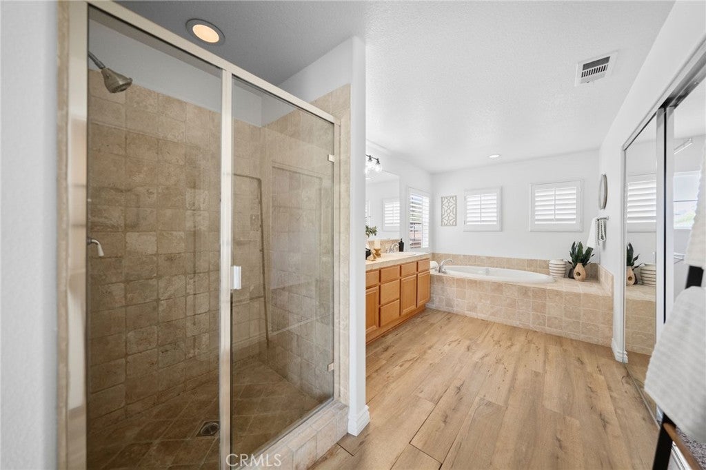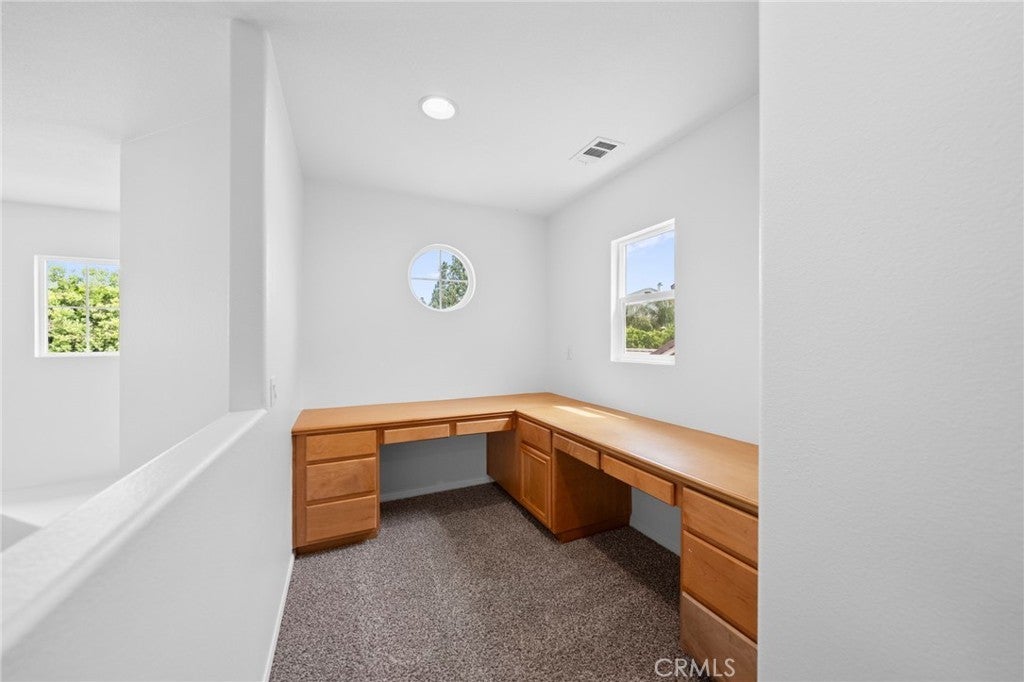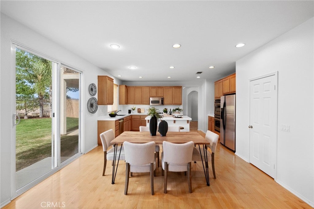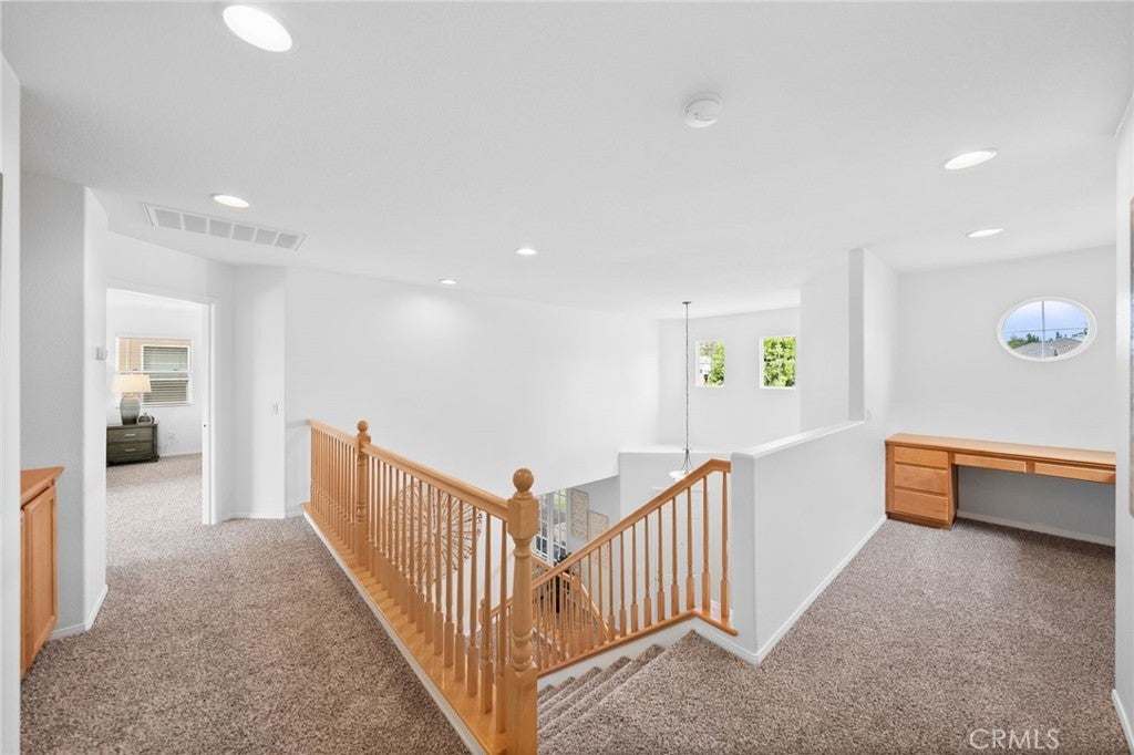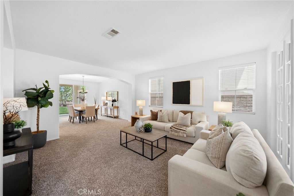 Tucked at the end of a quiet cul-de-sac w/in the prestigious, guard-gated community of Greer Ranch, this beautifully refreshed 4-BR, 3-BA residence offers an exceptional blend of space, natural light, & serene hillside living. From the moment you arrive, fresh exterior paint & a charming covered front porch create a warm & inviting first impression-perfect for enjoying peaceful mornings. Inside, soaring 2-story ceilings & an abundance of natural light set the tone, complemented by freshly painted interiors & rich engineered hardwood flooring that flows seamlessly through the entry & kitchen. The formal living & dining rooms are framed by floor-to-ceiling windows & finished w/ brand-new carpet, creating an elegant setting for both everyday living & entertaining. The dining room opens effortlessly to the backyard, offering a true indoor-outdoor lifestyle. At the heart of the home, the thoughtfully designed kitchen features maple cabinets, a spacious center island w/seating, S.S. appl., & a pantry, all opening to the inviting family room anchored by a cozy fireplace. A highly desirable main-floor BR w/mirrored wardrobes sits adjacent to a full BA w/updated lighting, offering the perfect space for guests or a private home office. The laundry rm. incl. ample cabinetry + a utility sink for added convenience. Upstairs, plush new carpeting extends throughout, along w/ a built-in workstation ideal for remote work or study. 2 secondary BR share a Jack-and-Jill BA, while the expansive primary suite is privately positioned at the end of the hall. Complete w/its own private balcony, this tranquil retreat invites you to unwind while enjoying sweeping views & star-filled nights. The primary bath showcases dual vanities, a jetted tub, walk-in shower, generous walk-in closet & large windows that bathe the space in natural light, enhanced by plantation shutters. Step outside to a beautifully refreshed backyard featuring new sod, mature queen palms, & a spacious pool-sized lot-ready to enjoy or customize into your own private oasis, all set against the backdrop of rolling hills & the Temecula Valley. Residents of Greer Ranch enjoy 24-hour gated security, a resort-style pool & spa, parks, walking trails, & vibrant community events. Ideally located near the 215 & 15 freeways, w/convenient access to shopping, dining, Temecula’s renowned wineries, Pechanga Resort & Casino, & top-rated Murrieta schools, this home offers the perfect balance of luxury, comfort, & lifestyle.