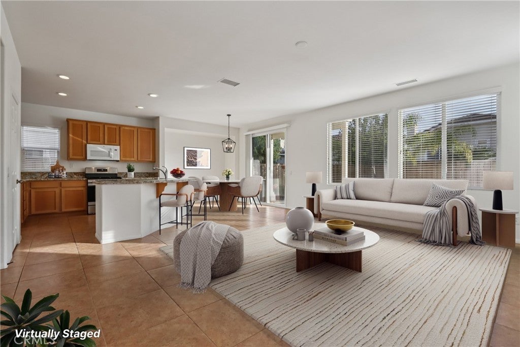 Move-in ready Canyon Hills cul-de-sac home with new interior paint, new carpet, private balcony, and a spacious backyard! Welcome to 33720 Mistflower Ct in Lake Elsinore, offering 3 bedrooms, 2.5 bathrooms, and 1,712 sq. ft. of well-designed living space. Step inside to a bright, open layout filled with natural light. The kitchen serves as the heart of the home, featuring granite countertops, new dishwasher, new stove range, and a spacious breakfast bar, all seamlessly connected to the family room—perfect for both everyday living and entertaining. Upstairs, the primary suite offers a private balcony retreat, ideal for morning coffee or unwinding in the evening. The primary bathroom has been refreshed with a newly reglazed finish and updated shower enclosure, adding a clean, modern touch. The large backyard provides plenty of space to relax, entertain, or create your own custom outdoor oasis, with room for a future pool. Located in the highly desirable Canyon Hills community, residents enjoy resort-style amenities including pools, parks, sports courts, and scenic walking trails, all nearby. Convenient access to the 215 and 15 freeways makes commuting, shopping, and dining easy. A fantastic opportunity to own a move-in-ready home with great space, natural light, and future potential in one of Lake Elsinore’s most sought-after communities.