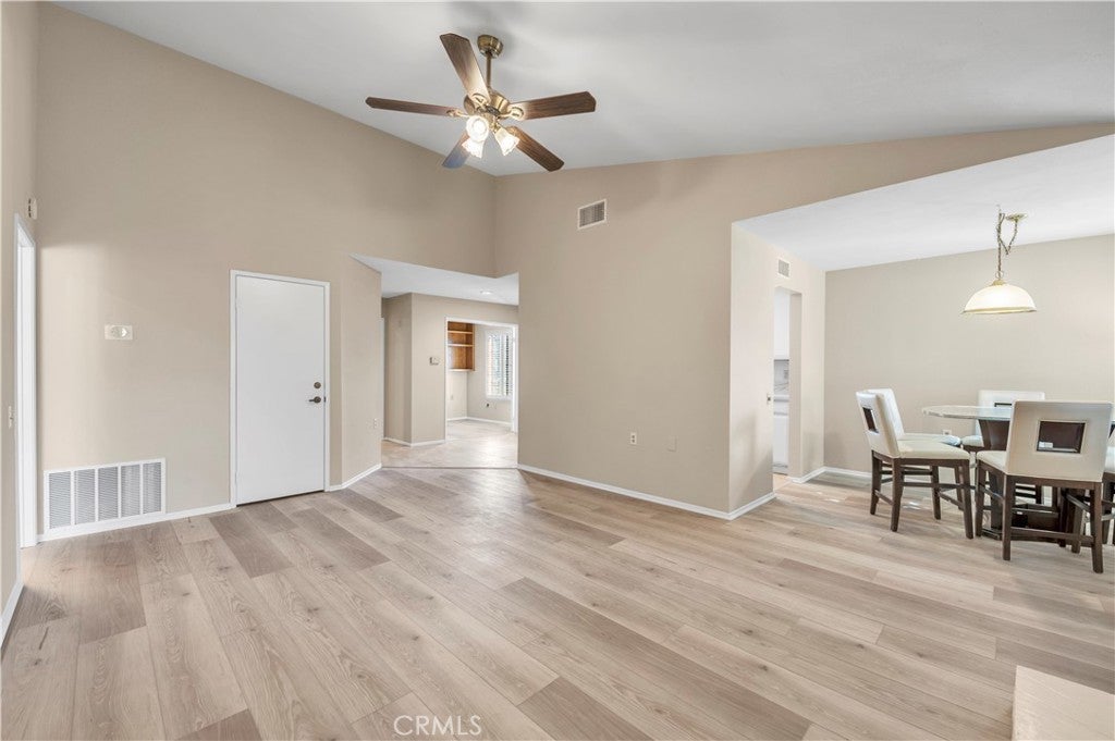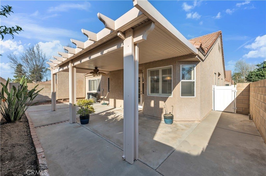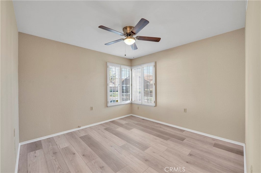 Your move in ready home is here!! ALL AGE COMMUNITY - FHA and VA LOANS are Welcome!! This lovely single story home features 2 bedrooms 2 bathrooms PLUS office & separate laundry room tucked inside the desirable Terra Linda community of Hemet. With an attached 2-car garage, a spacious 1,222 sq. ft. layout, and only one shared wall, this home lives and feels like a single family home with the convenience of condo living. Step inside to an inviting open floorplan featuring neutral LVP flooring, a bright living area with a cozy fireplace, and separate dining space that flows seamlessly into your kitchen beautifully equipped with quartz counters and stainless steel appliances . The spacious primary suite offers a relaxing retreat featuring large bedroom, generous closet, and beautiful ensuite bathroom with dual sinks and modern fixtures. The oversized 2nd bedroom is conveniently located near the 2nd stylish full bathroom . At front of home, double doors open to a private office with built ins - perfect for working from home or a quiet retreat. Low maintenance living provides time to enjoy your own private patio with Alumawood cover, ideal for morning coffee or relaxing evenings. The HOA offers a clubhouse , front yard maintenance, lots of greenspace , guest parking, and gated parking for your RV or oversized vehicles . Located minutes from shopping, schools, parks, and essential services, this home blends convenience with affordability. Low HOA, low-maintenance living, and an attached garage make this one of the best values in Hemet. Must see in person!