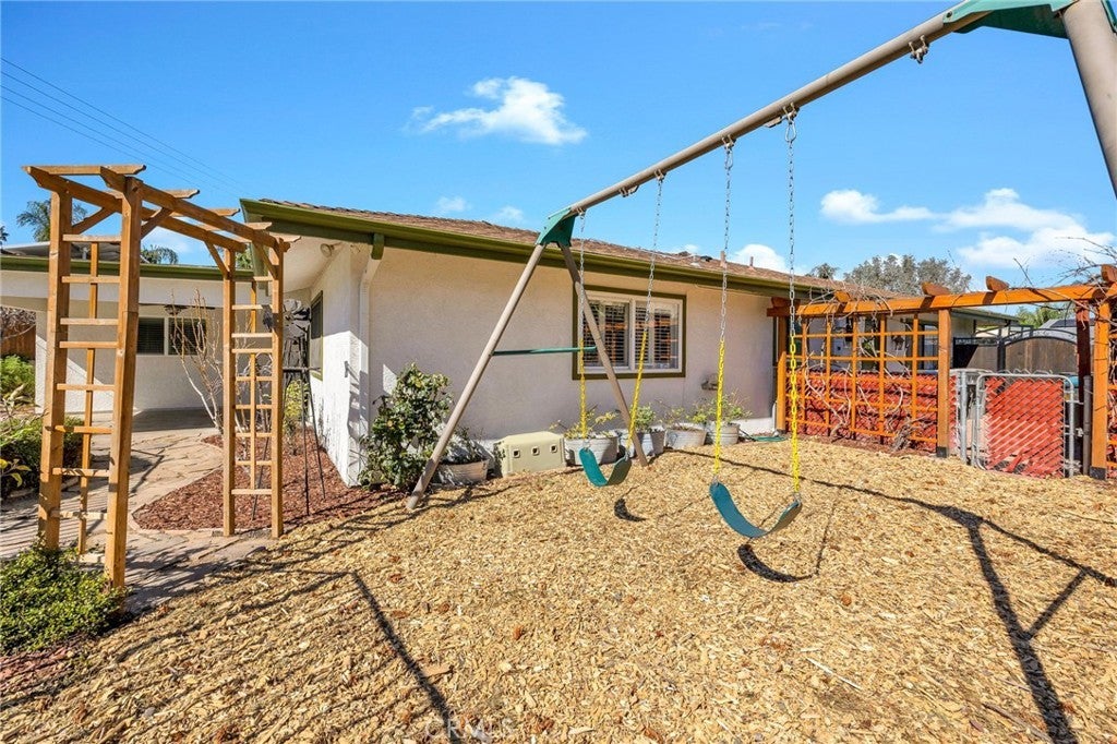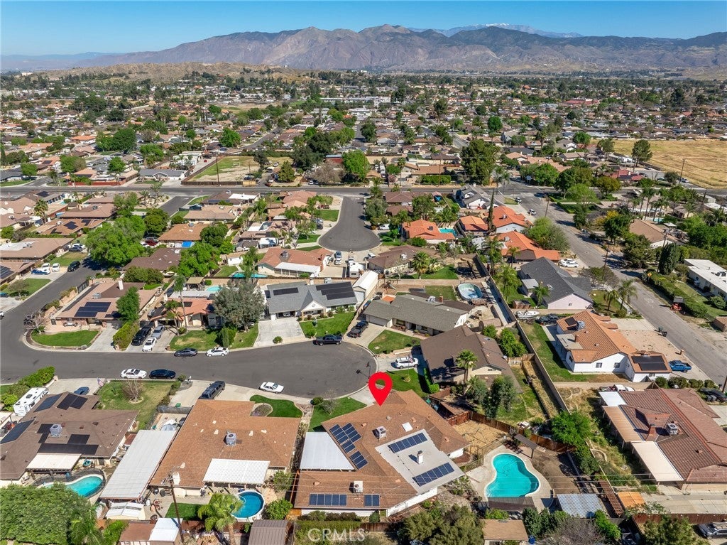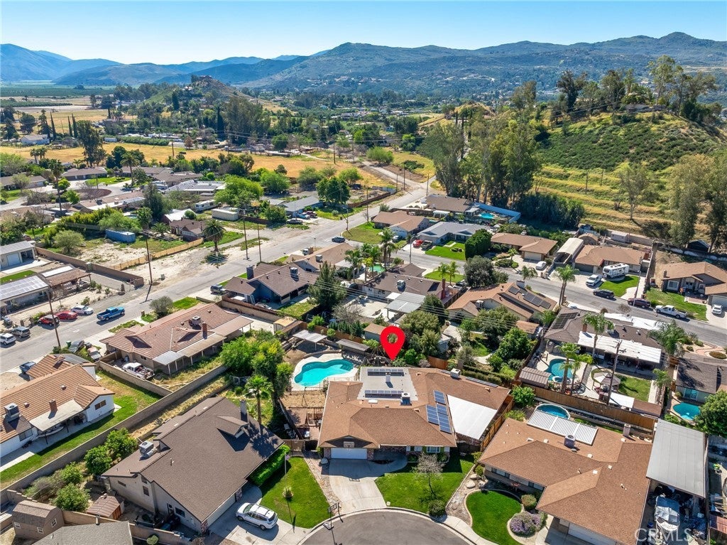 Tucked away at the quiet end of a cul-de-sac in South/ East Hemet, this beautifully remodeled residence offers an impressive 2,900 square feet of living space. Crafted to suit the needs of large or multi-generational families, the home features six spacious bedrooms and three modern bathrooms. With extensive upgrades and a thoughtfully designed, open layout, the property seamlessly balances comfort and flexibility. This makes it an exceptional haven for anyone seeking both style and practicality. Additionally, its prime location places you just moments from schools, shopping destinations, providing unmatched convenience for daily living. As you enter, you'll find yourself welcomed by a spacious, distinct living room that flows effortlessly into a formal dining area. Kitchen beautifully updated and accentuated by an eye-catching exposed beam that adds character and style. The open-concept layout cleverly unites the kitchen, dining, and family rooms, providing a perfect setting for gatherings and celebrations. This home is thoughtfully designed with two primary suites, each boasting a private bathroom for added comfort and privacy. In addition, there are four more generously sized bedrooms and a full guest bathroom, offers direct access to the garden and jacuzzi area—making it exceptionally convenient for both residents and visitors. Upgrades throughout the home include tile flooring, newer cabinetry, updated windows, and ceiling fans, two HVAC and two water heaters. Abundant natural light fills the living areas and bedrooms, enhancing the warm and inviting atmosphere. The main primary bedroom features two walk-in closet with custom cabinetry in the beautiful bathroom tiled shower. Step outside to a beautifully enclosed backyard, where lush, mature landscaping creates a tranquil retreat for you to enjoy. The shimmering swimming pool invites you to unwind on sunny afternoons, while the playground swing set offers endless fun for all ages. A dedicated sitting area, featuring a private jacuzzi, provides an ideal spot for relaxation or lively gatherings with friends and family. Additionally, the two-car garage enhances the property’s convenience and utility, seamlessly blending practicality with comfort. From the inviting family room, complete with a cozy fireplace, step directly onto the covered patio—a perfect setting for memorable gatherings with loved ones. This exceptional home offers a unique blend of comfort and style. Lease solar is $237.00