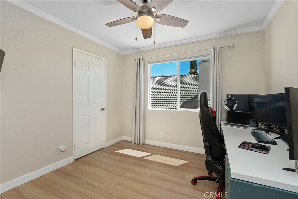 • Interior FeaturesCeiling Fan(s), Crown Molding, Separate/Formal Dining Room, Eat-in Kitchen, High Ceilings, Quartz Counters, Storage, Bedroom on Main Level, Walk-In Closet(s)