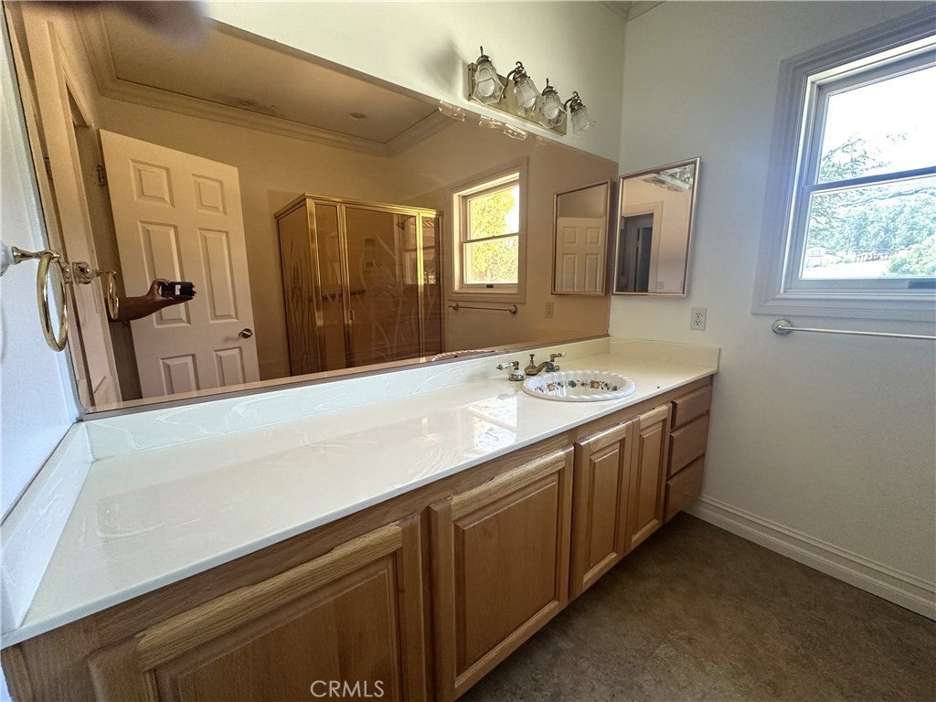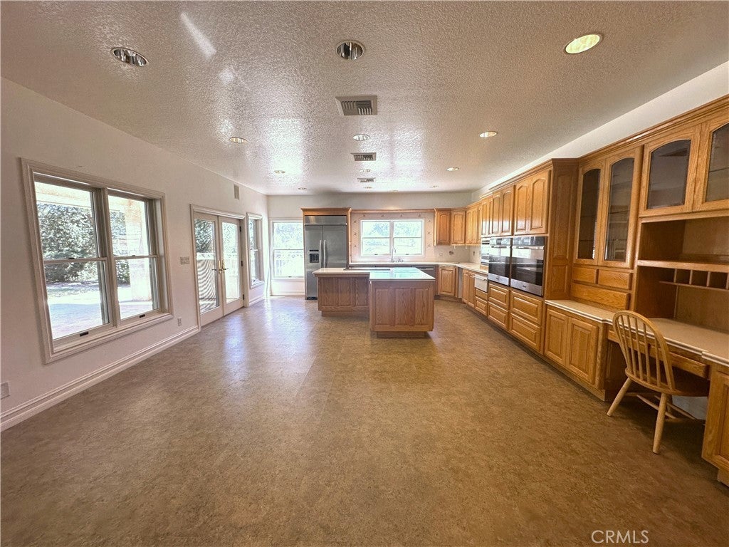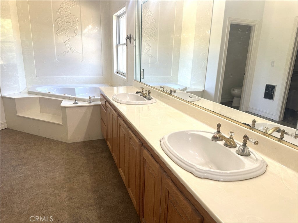 This stunning custom-built single-story estate featuring six bedrooms and five bathrooms is located in the highly sought-after and private rural west side of Murrieta. Set on approximately 4.46 fully usable acres, the property offers exceptional space, privacy, and versatility. The main residence spans roughly 5,000 square feet and showcases soaring 20-foot vaulted ceilings, creating an open and inviting atmosphere throughout the expansive living areas. Highlights include a double-sided fireplace, an elegant bar complete with a refrigerator and wine storage cabinetry, and beautifully appointed finishes throughout. Bathrooms are enhanced with tinted mirrors and shower enclosures, complemented by stylish sinks and fixtures. Additional interior features include two spacious cedar-lined closets, chandeliers throughout, a functional intercom system, and a well-equipped kitchen with dual ovens, two dishwashers, and abundant cabinetry. An attached private apartment of approximately 1,000+ square feet offers its own entrance and includes a living room, kitchen, bedroom, full bathroom, and laundry hookups—ideal for guests, extended family, or rental potential. For those seeking to expand, plans are already in place for a second story to add additional bedrooms and bathrooms, with some initial work already completed. The property is accessible through one of three gated entrances and is equipped with a security system. The grounds feature scenic walking trails, mature trees and rose bushes, creating a tranquil outdoor setting. With ample space, the property is also well-suited for equestrian use. Located within the Murrieta School District and conveniently close to shopping, dining, and major freeways, this exceptional property offers both seclusion and accessibility.