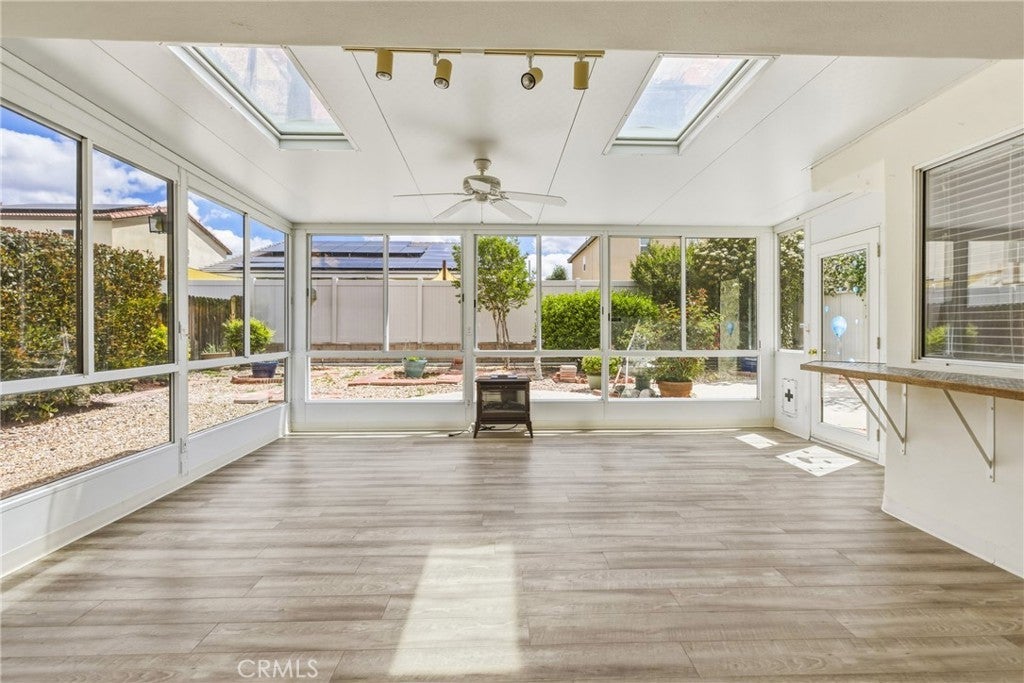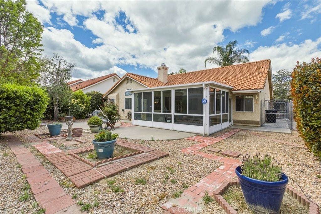 Beautiful single-story home on the west side of Hemet! 3 Bedroom 2 bathroom home. Updated flooring, granite countertops, and an upgraded tiled primary bathroom with walk in tiled shower. Open kitchen with island flows into the family room with fireplace and a large permitted sunroom adding additional square footage. Spacious primary suite with vaulted ceilings and slider to the backyard. Indoor laundry room. Large lot with storage shed and charming gated front courtyard. Low taxes, no HOA, and conveniently located near Domenigoni Pkwy and shopping.