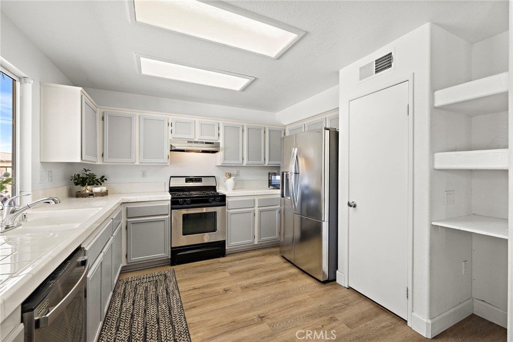 NO HOA, Lower taxes and Corner Lot! Location! Location! Location! Welcome to this stunning two-story corner lot home in the highly desirable and growing city of Wildomar! Boasting 4 bedrooms, 3 bathrooms, a loft, and 2,467 sq. ft. of living space, this home perfectly blends style, comfort, and convenience. Upon entering you will discover a large formal living room and adjacent dining room ideal for entertaining. The spacious kitchen features white tile countertops, stainless steel appliances, and a large bar for casual seating. A large family room with a charming fireplace provides a welcoming space for relaxation. Upstairs, the primary suite offers a generously sized bedroom and ensuite bathroom, separate tub and walk-in shower, and a huge walk-in closet. Three additional bedrooms and a versatile loft complete the upper level, providing flexible living space for your family. This home has been thoughtfully upgraded with new exterior paint, luxury vinyl plank flooring throughout and newer carpet, creating a bright, modern atmosphere. The laundry room offers plenty of storage, and the garage has direct access for convenience. Outside, enjoy drought-friendly landscaping and a backyard featuring a large concrete patio with an Alumna wood patio cover, perfect for outdoor gatherings or designing your dream backyard. Additional perks include no HOA and lower taxes. Conveniently located near shopping, dining, schools, and quick access to the 15 Freeway, this home truly has it all!
