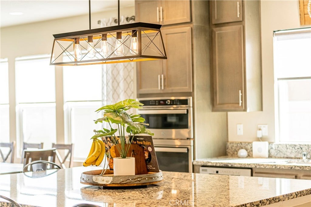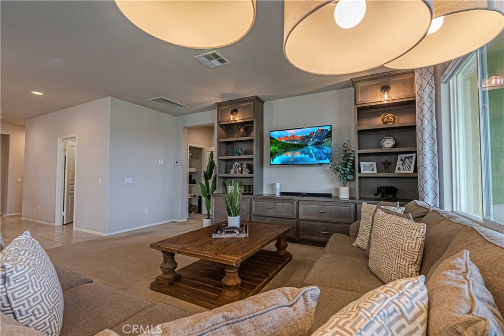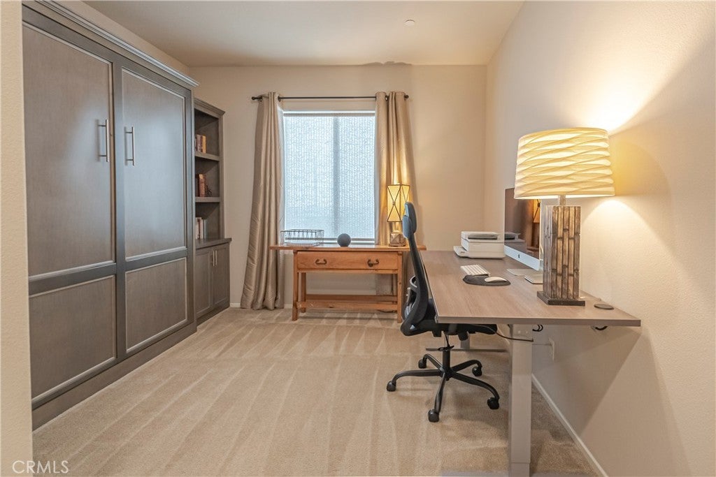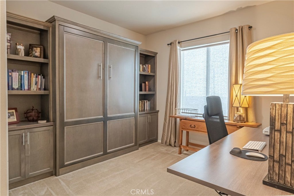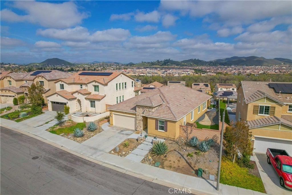 VIEWS...VIEWS.....& MORE VIEWS!!! | SINGLE STORY | CUSTOM BUILT-INS | SPACIOUS GREAT ROOM | SINGLE LOADED STREET | 3 BED + OFFICE | PRIME LOCATION!! - Welcome to this beautifully spacious single story home with VIEWS that will be hard to match!! From the moment you arrive, the inviting curb appeal with custom hardscape sets the tone for a home that effortlessly blends comfort and style. Located on a single loaded street with more incredible views out front; walking trails and a lush park await your enjoyment right across the street. Inside you'll experience an expansive 2,164 square-foot layout featuring abundant natural light and a gorgeous great-room that so many love. The kitchen serves as the heart of the home including a massive granite island with counter seating, stunning floor to ceiling cabinetry, ample counter space, lots of storage, stainless steel appliances and a huge walk-in pantry. This all flows seamlessly into the main living area with a dazzling custom built-in entertainment center with designer lighting. The home offers 3 generously sized bedrooms and an additional office space with a beautiful custom barn door and custom built-in murphy bed/shelving unit. The primary suite is designed as a private retreat with gorgeous spa like bath and more tantalizing views of the mountains beyond and city lights below. Step outside to a versatile backyard space perfectly suited for both peaceful relaxation and entertaining family & friends. Enjoy the shade of a well-placed California room, large concrete patio, extensive hardscape, spacious side yard with custom pavers and turfed play area. Situated in one of most sought-after communities in this whole valley, Audie Murphy offers endless fun and recreation with several parks, playgrounds, sports park, skate park, basketball courts, and tennis courts. The Ranch House community clubhouse pool area is a prized feature for Audie Murphy and a complete other community pool area just right down the dedicated trail right out the front door of this amazing residence. Enjoy incredibly convenient access to top-rated local schools, access to be the 15 & 215 freeways, premier shopping and dining destinations at the well acclaimed Menifee Town Center. With its blend of suburban serenity and everyday convenience, this property is a premier destination for those seeking a vibrant atmosphere to call home.