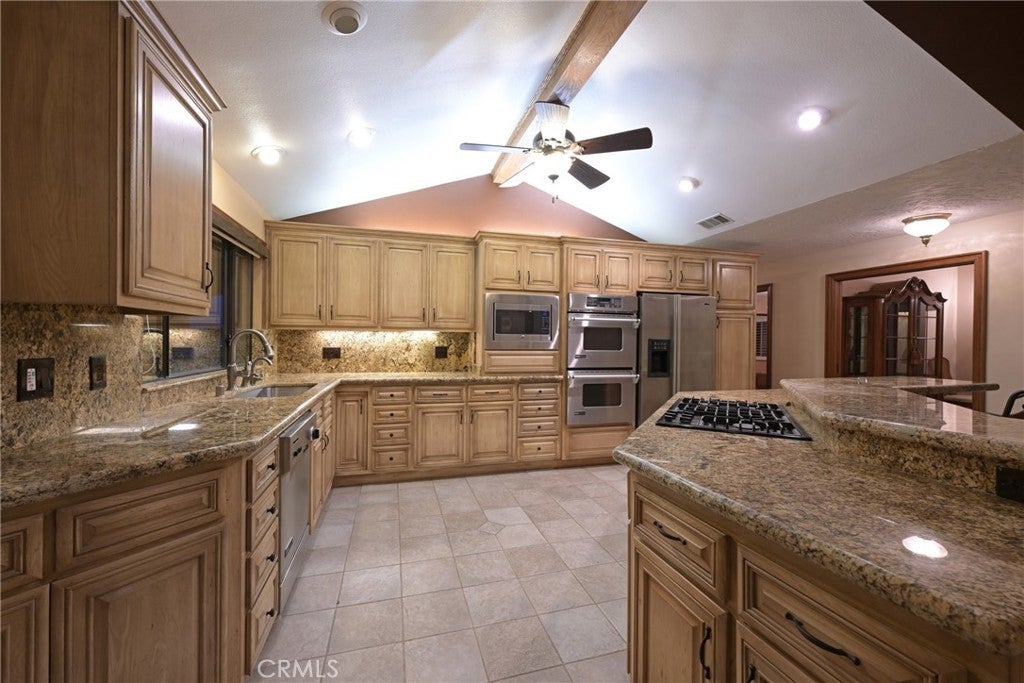 Welcome to a rare equestrian retreat in the heart of Corona. Tucked away at the end of a quiet street, 9330 Gum Tree Drive offers exceptional privacy, space, and custom craftsmanship on a beautifully improved horse property. This expansive single-story ranch home features approximately 3,000 sq. ft. of living space with 3 bedrooms, 2.5 bathrooms, plus a dedicated office with custom built-ins that can easily serve as a 4th bedroom. A permitted addition enhances the home with a large, private formal dining room located directly off the kitchen, creating an ideal setting for entertaining, family gatherings, and holiday meals. The remodeled kitchen is a true centerpiece, showcasing custom cabinetry, granite countertops, soft-close hardware, and premium Jenn-Air appliances. Recent upgrades include new carpet, tile, and wood flooring, Low-E windows, enhanced insulation, a tankless water heater, and a whole-house attic fan for year-round comfort and efficiency. Outdoor living is equally impressive with a Trex custom rear deck, and an expansive brick and concrete patio with fire pit, perfect for relaxing evenings or entertaining guests. The property is thoughtfully designed for equestrian use with a BarnMaster 4-stall barn, tack room, storage, arena, wash rack, hay and tool storage, and a hot walker. Additional highlights include RV parking with a 30-amp hookup, low tax rate, and no special assessments. Mature oak trees, palm trees, fruit trees, and a large garden area complete this peaceful setting. Ideally located next to Tom’s Farms and the world-renowned Glen Ivy Hot Springs, this property offers a rare blend of serene country living with everyday convenience. This is a must-see quiet retreat—where lifestyle, location, and land come together. Property does need some TLC.
