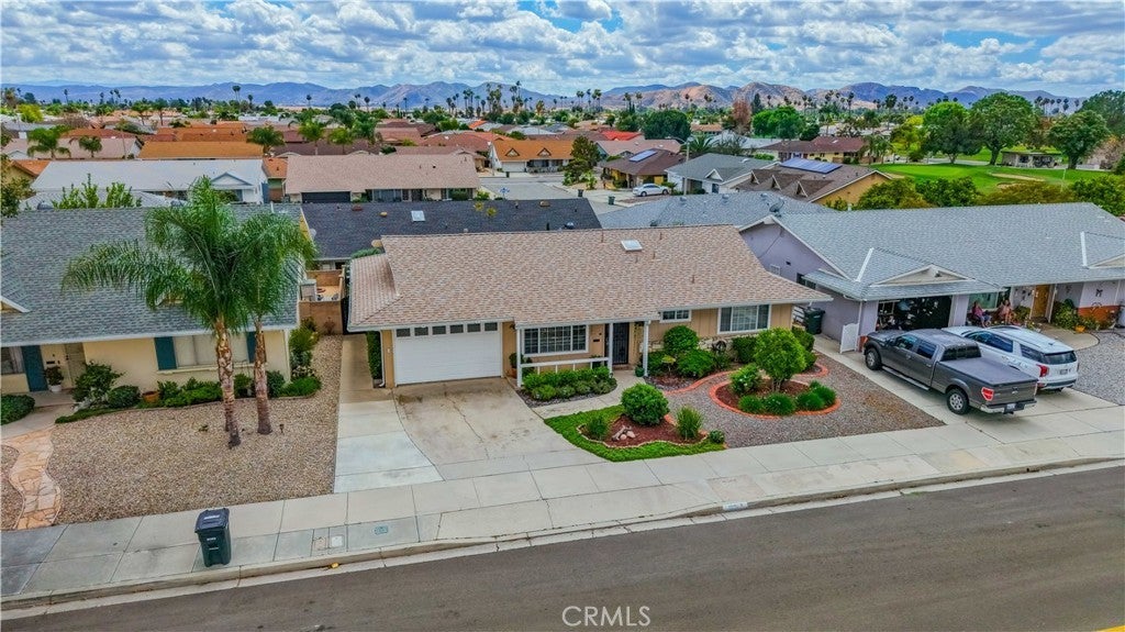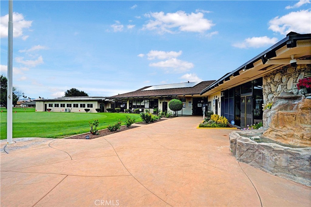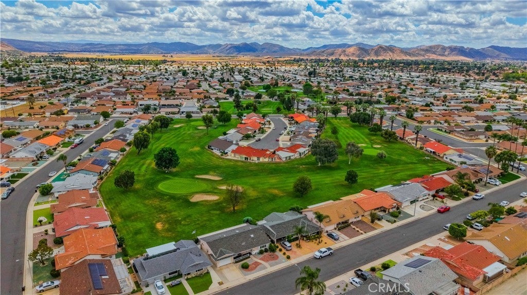Welcome to desirable 55+ Panorama Village in Hemet, a vibrant golf course community known for its 9-hole golf course, beautifully remodeled clubhouse with kitchen area, and wonderful amenities including a saltwater pool, 3 indoor jacuzzis, billiard room, library, indoor pickleball and shuffleboard courts, dog park, and RV parking access. This beautifully remodeled home offers comfort, style, and golf course views. Inside, you’ll find wood flooring in the main living areas, carpet in the bedrooms, and thoughtful upgrades throughout. The spacious primary bathroom features marble flooring, marble countertops, and a porcelain tub/shower. The hall bathroom has been updated with a stand-alone shower and upgraded vanity. The remodeled kitchen is a standout with quartz countertops, self-closing drawers, stainless steel appliances, a farmhouse sink, and recessed lighting. Additional features include dual-pane windows, a dual-pane sliding glass door leading to the sunroom, newer blinds, ceiling fans, rain gutters, a roll-up garage door, covered porch, and a newer roof approximately 4 years old. Enjoy peaceful golf course views and all the benefits of resort-style senior living in this move-in ready home.