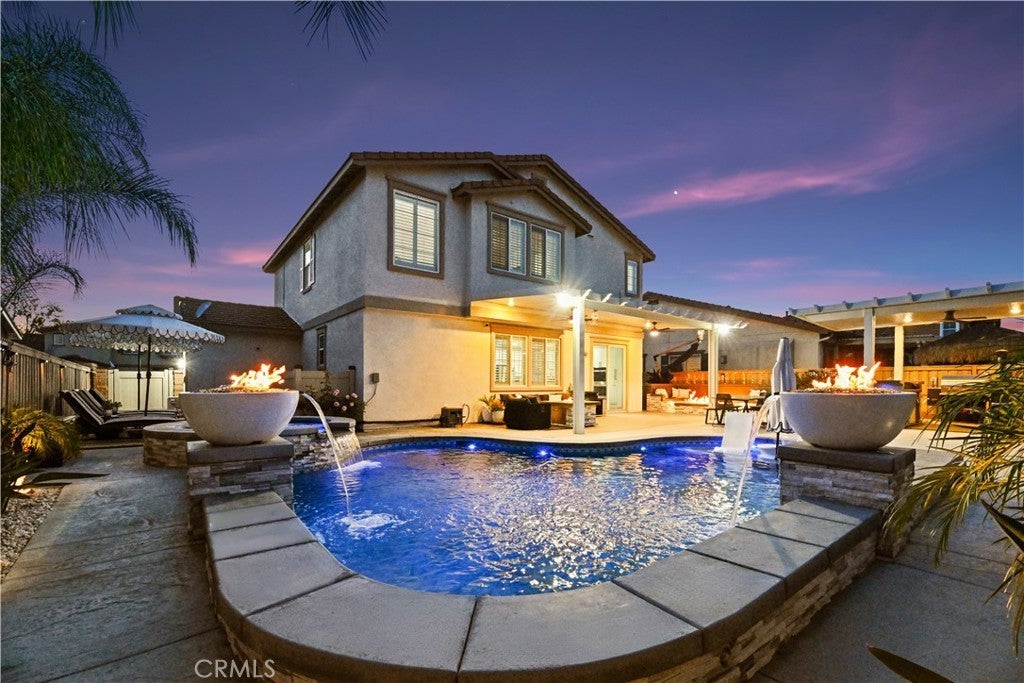 Located in The Lakes in Menifee, This home offers a rare combination of major system upgrades, modern interior finishes, and a true resort style backyard designed for everyday living and entertaining. This home has been extensively improved over the past few years, giving buyers peace of mind and a move in ready experience with minimal deferred maintenance. The exterior was completely repainted a few short years ago, enhancing curb appeal and overall presentation. Additional exterior improvements include Govee permanent lighting, added sidewalk and stairs, and a widened driveway for improved functionality and parking. Inside, the home features a fully remodeled kitchen creating a modern and inviting space for cooking and gathering. All flooring throughout the home has been replaced, providing a fresh, cohesive feel from room to room. Major mechanical upgrades have already been handled, including a full A/C and furnace replacement, along with a tankless water heater. A dedicated A/C unit was also added to the garage offering additional comfort and flexibility for workspace or storage use. The backyard is truly the centerpiece of the property. Designed with no expense spared and no corners cut, it features a custom pool with water features, fire bowls, and spa, along with a sun tanning and lounge area built for relaxation. The outdoor kitchen and fire pit area create the perfect setting for entertaining, while a designated dog relief area adds thoughtful functionality. Residents of The Lakes enjoy access to resort style amenities including multiple lakes, walking trails, a clubhouse, pools, fitness center, parks, and more. This is an opportunity to own a home where the big ticket upgrades are already complete and the lifestyle speaks for itself. Come see this property for yourself!