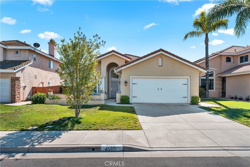 Welcome to 45071 Corte Bravo – A Charming Single-Story Gem in the Heart of Temecula Nestled in a serene and well-maintained neighborhood of Bridlevale, this beautifully appointed single-story 3 bedroom 2 bath home offers the perfect blend of comfort, style, and energy efficiency. Featuring a classic Mediterranean exterior with beige stucco walls and a red-tiled roof, the property boasts excellent curb appeal and a welcoming front porch framed by elegant white columns. Step inside to discover a spacious and light-filled interior with central air and electric cooling, ceiling fans, and tasteful finishes throughout. The open-concept layout includes a modern kitchen equipped with a dishwasher and gas dryer hookup, ideal for everyday convenience. The living areas are thoughtfully designed for both relaxation and entertaining, with large arched windows that invite natural light and offer scenic views of the surrounding mountains. Outdoors, enjoy a private backyard oasis complete with a covered patio, pergola, and lush landscaping—perfect for hosting gatherings or unwinding under the stars. Solar panels add eco-friendly value, reducing energy costs while embracing sustainable living. Home also is equipped with a quiet cool house fan to keep the home cool without the expense of using the AC in those warm evenings. Located near top-rated schools, shopping, and dining, this home is a rare find in one of Temecula’s most desirable communities. Don’t miss the opportunity to make it yours!