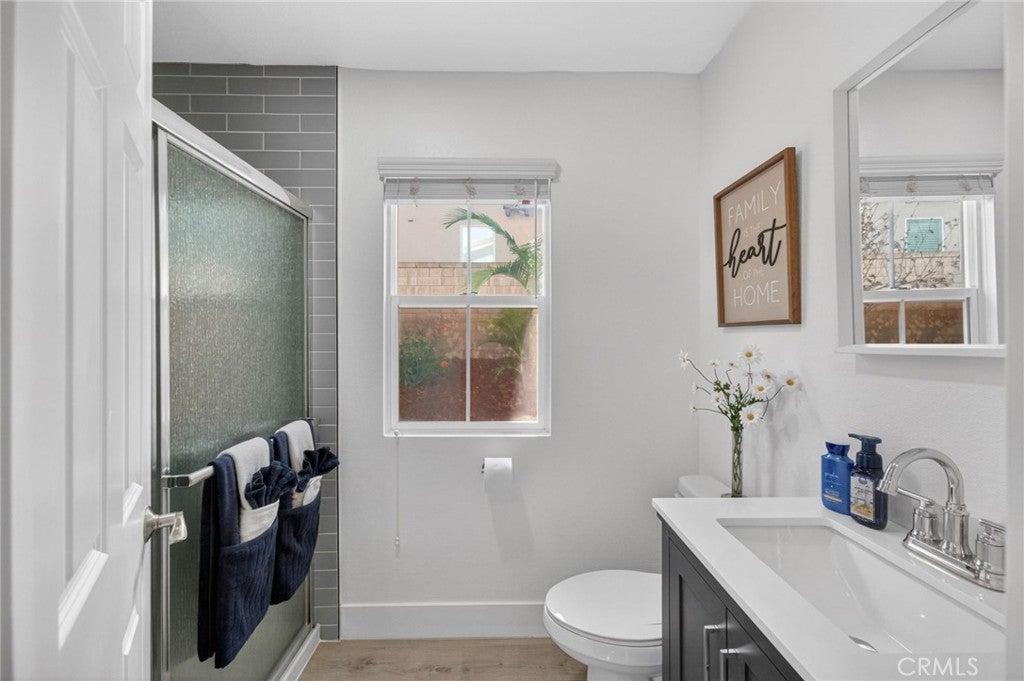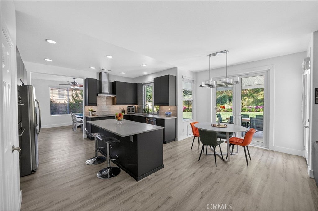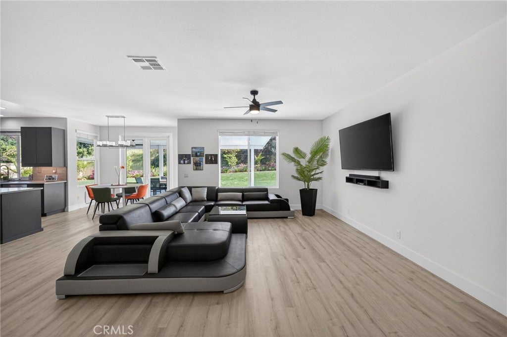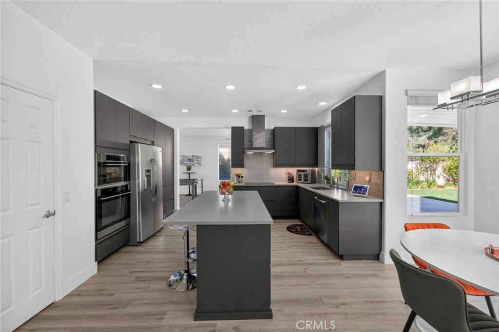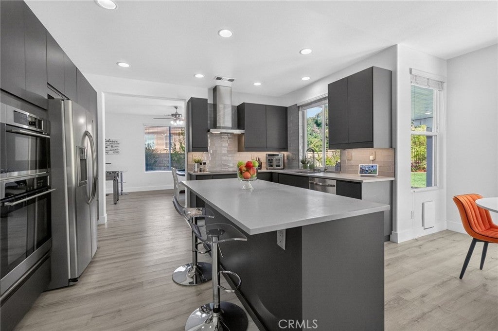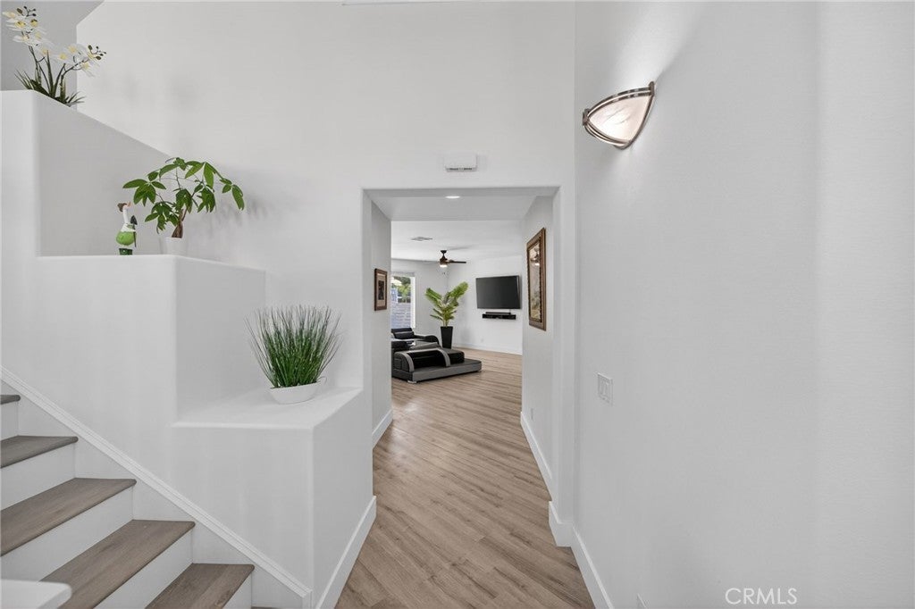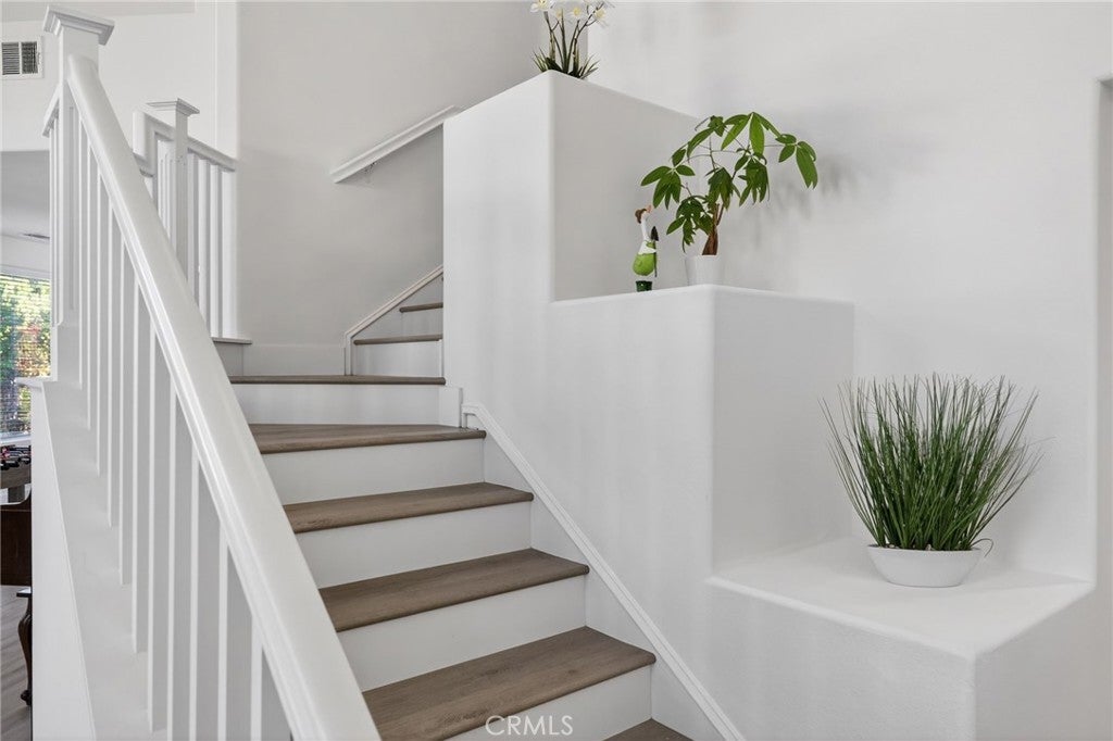 Immaculate EAGLE GLEN 2 story family home, turnkey both inside and out! This beautiful 4 bedroom 3 bathroom STUNNER offers a remodeled and open floor plan complete with newly renovated kitchen, new flooring throughout, fresh paint both inside and out, new downstairs bathroom and shower, and freshly finished landscaping. This home is the definition of move-in ready, complete with all appliances including washer/dryer and refrigerator. Upon entry, you are greeted by soaring ceilings with fresh and vibrant natural light. The kitchen offers modern cabinetry with quartz counters, glass tile backsplash and stainless steel appliances. Downstairs enjoy the mother-in law quarters with larger bedroom, adjacent bathroom with shower, and laundry. Leading up the hard-surface, newly refinished stairs to the oversized primary suite with retreat, spacious bathroom and large walk-in closet. Additionally, upstairs are two spacious guest bedrooms finished in fresh, plush carpet, and a centralized full bathroom. Access to the private rear yard with large covered patio is found through the custom french doors directly off of the kitchen, perfect for entertaining or family time. The rear yard has no rear neighbors, plush lawn and a custom lounging deck for your private morning coffee. Located walking distance to multiple parks, school, golf course, and a few minute drive to new shops, restaurants and the Dos Lagos open air mall. This is the one to see!