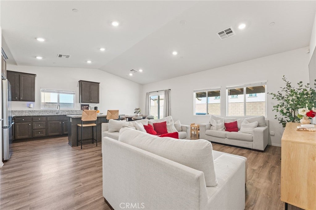 Built in 2023, this 3 bedroom, 2 bath home offers approximately 1,600 sq ft of living space in Victorville. The floor plan features a long entry leading to an open living area. The kitchen includes granite countertops, center island with seating, and stainless steel appliances. PAID OFF solar, and $15,000 upgraded patio and backyard. Bedrooms are spacious, including a primary suite. The property offers an oversized backyard with potential for outdoor use or future improvements. Additional features include smart home technology, LED recessed lighting, and a tankless water heater.