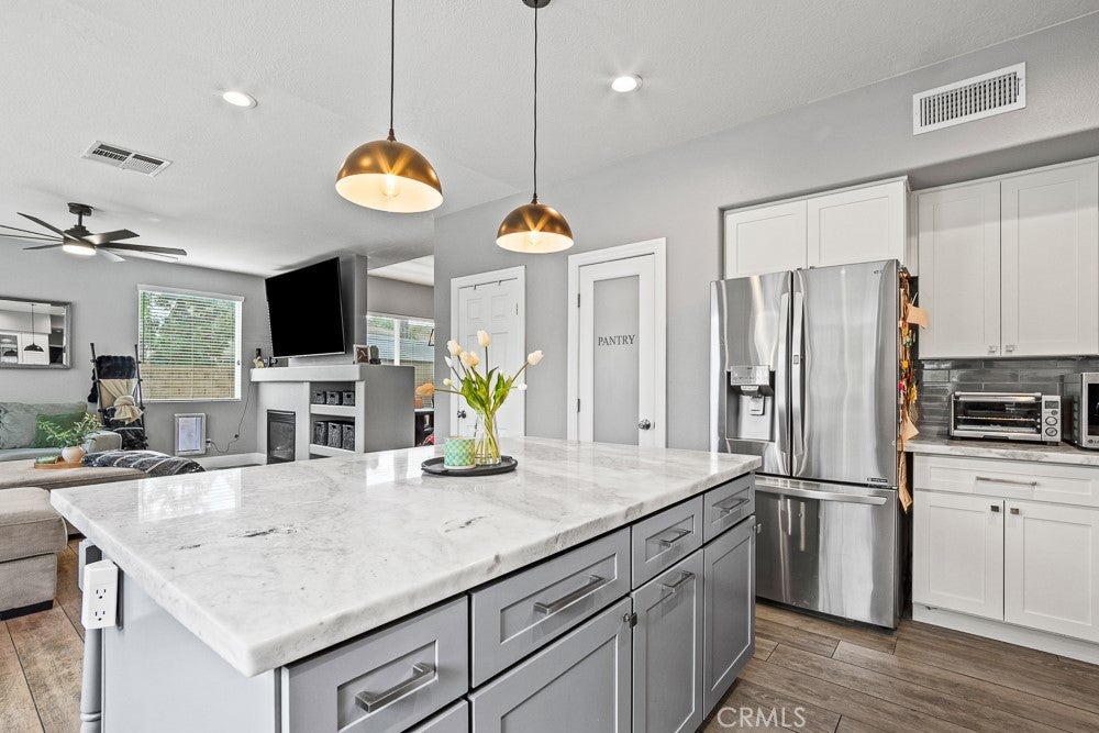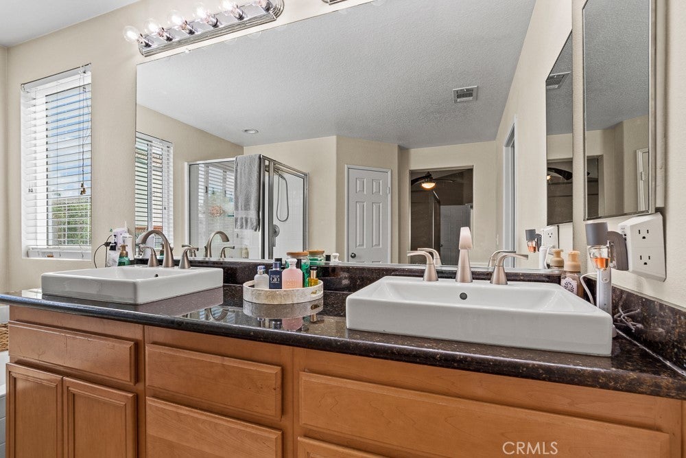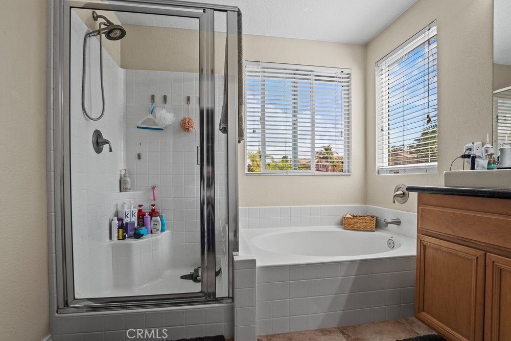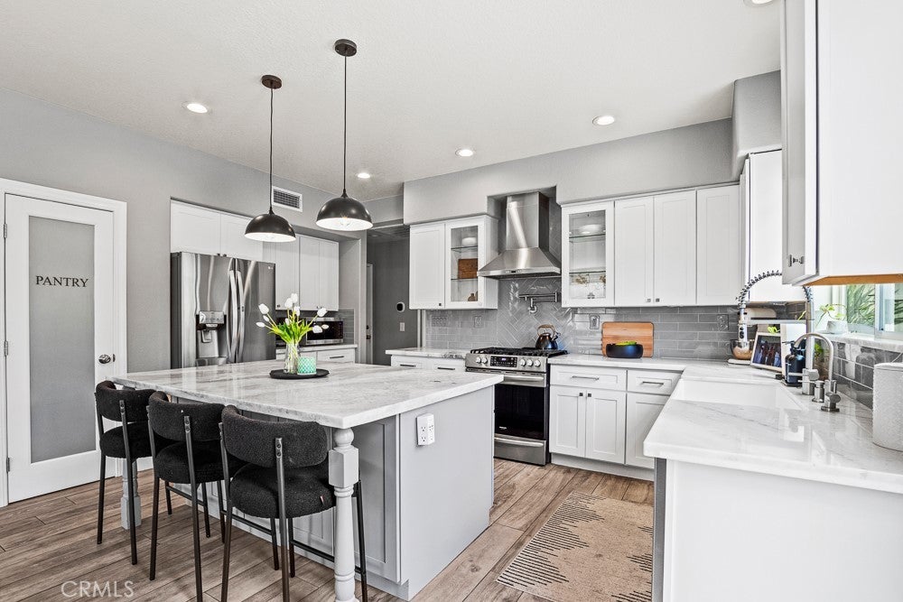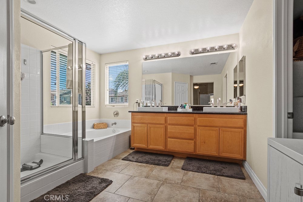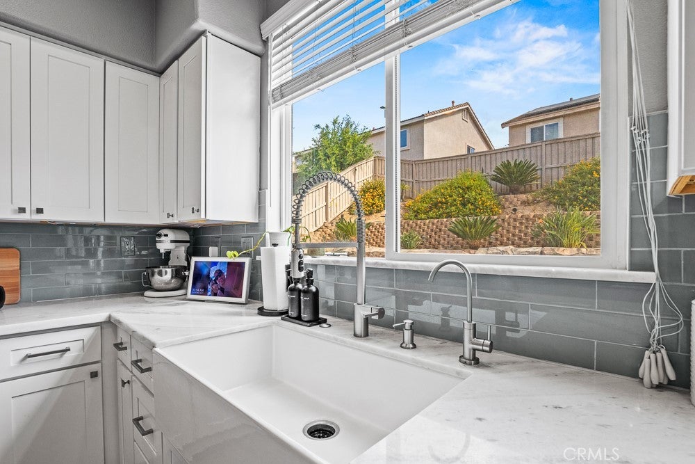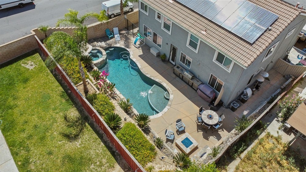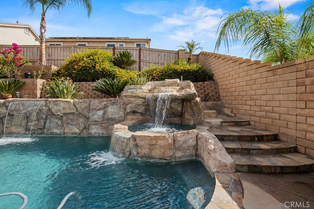 Beautifully upgraded 6-bedroom, 3-bath home with a spacious loft offering 2,778 sq ft of well-designed living space, located in a great Murrieta neighborhood. The entire downstairs has been thoughtfully remodeled, featuring stylish 5-foot plank tile flooring that mimics the look of wood. The kitchen is a true showstopper with quartz and marble countertops, a farmhouse sink, and a convenient pot filler—perfect for both everyday living and entertaining. Enjoy modern conveniences including a QuietCool whole house fan, a 6-stage alkaline reverse osmosis system, and a tankless water heater with whole-house recirculation pump.Whole house water conditioner, Energy efficiency is a bonus with 39 paid-off solar panels. Step outside to your own private resort-style backyard, complete with a saltwater PebbleTec pool, grotto, and two waterfalls—perfect for relaxing or entertaining. Additional outdoor highlights include a fire pit with built in seating , low-maintenance landscaping, and a dedicated dog run. Low Taxes ,No HOA ,Culdesac street. The home also features a custom insulated garage door with side-mount opener, adding both convenience and efficiency. This property truly combines comfort, style, and functionality—ready for you to move in and enjoy!