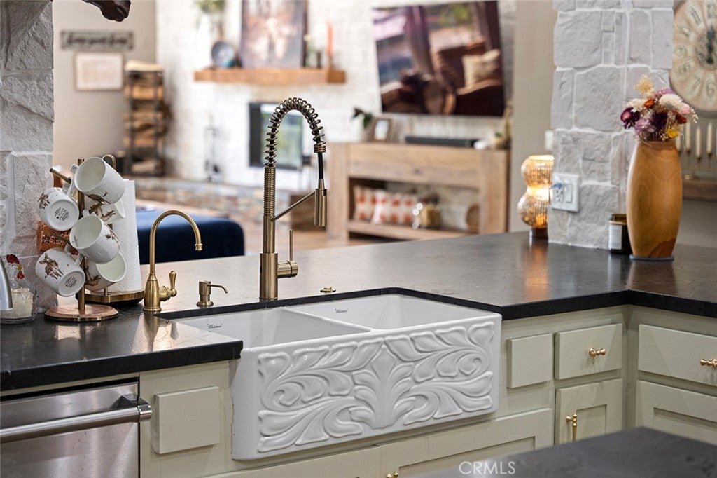 • Interior FeaturesBeamed Ceilings, Breakfast Bar, Built-in Features, Ceiling Fan(s), Cathedral Ceiling(s), Central Vacuum, Separate/Formal Dining Room, Granite Counters, High Ceilings, Open Floorplan, Pantry, Stone Counters, Storage, Two Story Ceilings, Bedroom on Main Level, Multiple Primary Suites, Primary Suite, Walk-In Pantry, Walk-In Closet(s), Instant Hot Water