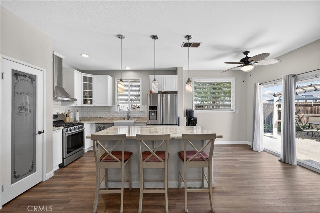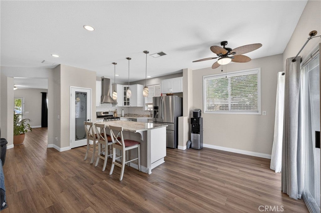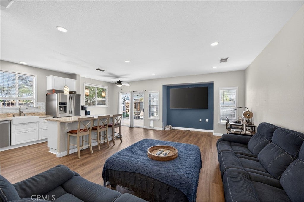 Welcome to this stunning single-story home in East Hemet — where comfort, functionality, and the good life all come together under one roof. With 4 bedrooms, 2 full baths, and 1,866 sq ft of open, flowing living space, this home was designed for real life. This includes a spacious primary suite with a walk-in closet, making day-to-day living effortless for families of any stage. The heart of the home opens beautifully to a family room built for connection — whether it's movie nights, homework sessions, or hosting the whole crew. The kitchen was upgraded with a large island, updated appliances and backsplash. Step outside and the backyard delivers: a private above-ground pool, sweeping mountain views, and a landscaped yard that's ready for every season. The oversized 3-car garage is a rare find and gives you the storage, workspace, or hobby room you've always wanted. Inside laundry, central heat and air, energy-efficient appliances, and a neighborhood park nearby check every practical box — and with no HOA and low property taxes, this home is as smart financially as it is beautiful to live in. Located near top local schools and convenient to shopping, dining, and the 74. This one is move-in ready and priced to sell.