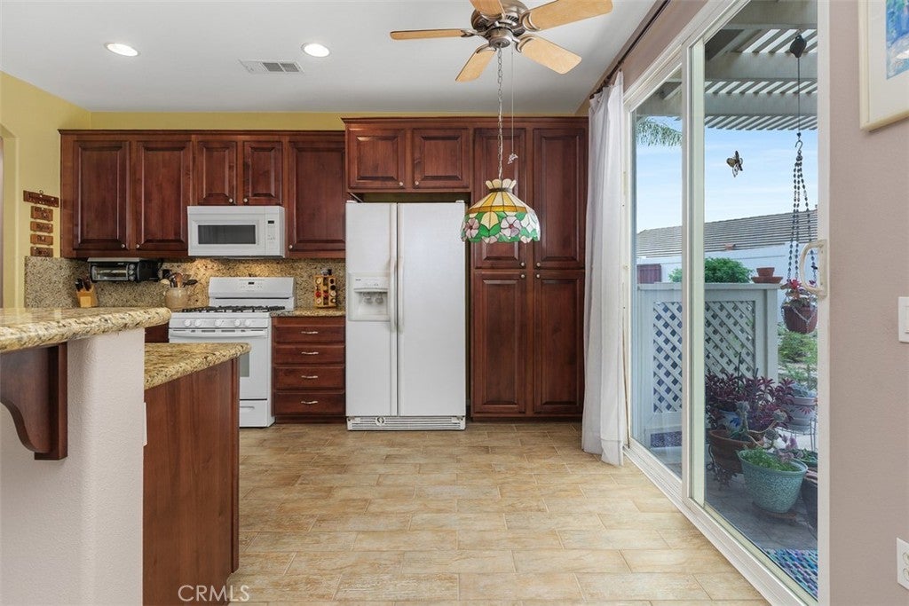 • Interior FeaturesBreakfast Bar, Breakfast Area, Ceiling Fan(s), Separate/Formal Dining Room, Eat-in Kitchen, Granite Counters, High Ceilings, Recessed Lighting, All Bedrooms Down, Entrance Foyer, Main Level Primary, Walk-In Closet(s), Dressing Area