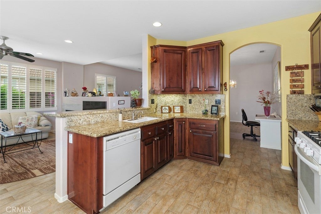 Welcome to this impeccably maintained, original-owner home located in the prestigious Four Seasons 55+ community of Murrieta. This spacious single-story residence offers 2 bedrooms plus an office, 2 bathrooms, and a thoughtfully designed open floor plan filled with natural light. The well-appointed kitchen features granite countertops, a breakfast bar, and a cozy eat-in nook, complemented by elegant plantation shutters throughout the home. Enjoy both a formal living room and separate dining area, along with a warm and inviting family room complete with a fireplace—perfect for relaxing or entertaining. The primary suite is a true retreat, offering two walk-in closets and a luxurious ensuite bath with a spacious walk-in shower and separate soaking tub. Two guest rooms are located at the front of the home, one currently configured as an office, with a conveniently situated guest bathroom featuring a shower/tub combination. Additional highlights include a generously sized laundry room with a deep sink and ample storage cabinetry, as well as a 2-car garage with an epoxy-coated floor and an upgraded tankless water heater. Step outside to a beautifully landscaped, low-maintenance backyard showcasing stamped concrete, an Alumawood patio cover, fruit trees, and breathtaking views—creating a peaceful and private outdoor oasis ideal for entertaining or unwinding. Residents of Four Seasons Murrieta enjoy resort-style living with access to world-class amenities, including a 10-acre lodge featuring a heated pool and spa, fitness center, aerobics and dance studio, library, hobby rooms, beauty salon, and a grand ballroom. Outdoor amenities include tennis and pickleball courts, bocce ball, shuffleboard, putting green, walking trails, and more. The community also offers a vibrant social calendar with clubs and activities such as art classes, yoga, bridge, and billiards. Conveniently located near shopping, dining, and entertainment, including the Promenade Mall, and just minutes from Temecula’s charming Old Town and renowned wineries. With low HOA dues, no Mello-Roos, and appliances included (washer, dryer, and refrigerator), this move-in ready home offers the perfect blend of comfort, luxury, and active adult living. Come experience the exceptional lifestyle at Four Seasons Murrieta!