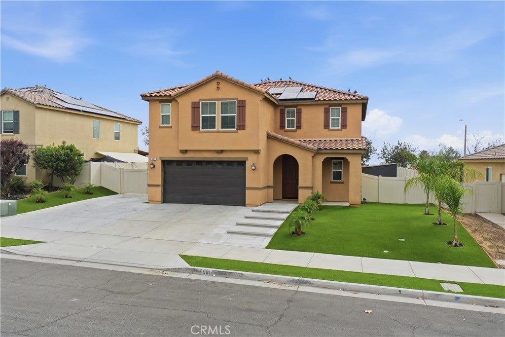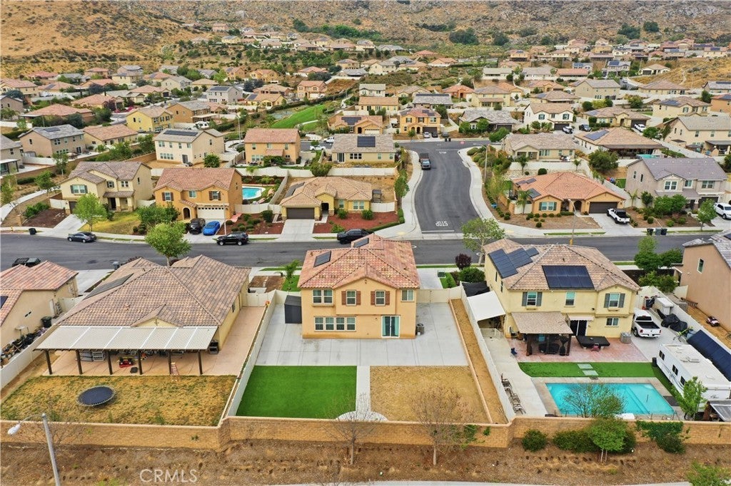 You can buy this home or rent this home for $3,300.00 per month. No lease to own. Just a regular 12-month lease at a time. Welcome to the highly desirable Cove Community in San Jacinto where comfort, efficiency, and modern upgrades come together in one exceptional home. This beautifully maintained 4-bedroom, 2.5-bath residence offers an open floor plan designed for both everyday living and entertaining. Step inside to find upgraded flooring, recessed lighting, and a spacious layout that flows seamlessly from the living area into a well-appointed kitchen featuring granite countertops and stainless-steel appliances. One of the standout features is the downstairs bedroom and bathroom, providing added convenience for guests, multi-generational living, or a private office setup. Upstairs, you’ll find generously sized bedrooms, including a primary suite with a super large walk-in closet. Situated on an expansive nearly 9,000 sqft lot, the backyard is truly a rare find. With artificial turf throughout, you’ll enjoy a clean, low-maintenance outdoor space year-round. The pool-sized lot offers endless possibilities for customization, while hardwired low-voltage landscape lighting creates an inviting ambiance in the evenings. RV parking and an extended driveway provide ample space for vehicles, toys, and guests. This home is also equipped with a solar lease that is incredibly affordable and designed to fully offset utility costs bringing long-term energy savings. For added convenience, a 240V Tesla Level 2 charger is already installed. With its thoughtful upgrades, oversized lot, and prime location, this home offers the perfect blend of functionality and lifestyle. Don’t miss your opportunity to own in one of San Jacinto’s most sought-after communities.