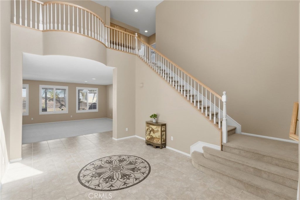 Paseo Del Sol POOL & SPA home with gorgeous curb appeal! This home welcomes you with a huge grand entrance with vaulted ceilings and a stunning medallion tile inlay. This 5-Bedroom, 3-Bathroom residence offer an exceptional blend of sophisticated and tranquil living. The expansive 3,432 sqft floor plan with grand formal spaces and a gourmet kitchen with granite countertops and new ovens that flows into the inviting family room with a cozy brick fireplace. A rare downstairs bedroom and full bathroom downstairs that is perfect for guests or an office. Thoughtfully designed floor plan with the primary suite privately situated on one side of the home, while three secondary bedrooms are located on the opposite wing - providing ideal separation and privacy for family or guests. The spacious primary features a private retreat just off the bedroom perfect for a cozy sitting area, home office, reading nook, nursery, or personal fitness space. This versatile bonus area offers the ideal place to unwind and enjoy a quiet escape within your own suite. This home also stands out for its high-value mechanical updates, including a newer water heater, a newer sprinkler controller and manifold for the lush grounds, and a newer pool pump to service the private backyard oasis. Step outside to find a paradise for entertaining, complete with a sparkling pool and heated spa, a built-in barbecue island, and a full patio cover. Additional highlights include ceiling fans throughout, a 3-car garage with dual driveways, and access to the highly desirable Paseo Del Sol community amenities including pools, spas, clubhouses, exercise rooms, sports courts, and parks. All of this in the heart of Temecula where you are just minutes from shopping, restaurants, award-winning schools, Wine Country, and much more! A home that is truly a must-see!