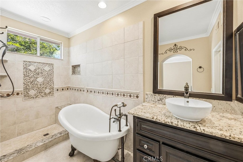Welcome to this bright and cheerful single-story home nestled in one of Oceanside’s most desirable neighborhoods, known for its wide tree-lined streets and generously sized lots. This beautifully maintained 4-bedroom residence offers exceptional curb appeal, a 3-car garage, and ample space for RV and boat parking—perfect for those who value both comfort and convenience. Step inside to find formal living and dining rooms, ideal for hosting gatherings, and a well-appointed kitchen featuring an oversized island, soft-closing, white shaker cabinetry, granite countertops, and stainless steel appliances. The kitchen flows seamlessly into a spacious family room with a cozy gas fireplace, creating the perfect setting for everyday living and entertaining. The gorgeous primary suite serves as a private retreat, complete with a clawfoot soaking tub, walk-in shower, and generous walk-in closet. Two additional spacious bedrooms and a versatile fourth bedroom- ideal for a home office- offer flexibility for any lifestyle. Throughout the home, you’ll appreciate crown molding, abundant built-in cabinetry, and ample storage space. Step outside to your entertainer’s dream backyard, featuring a covered patio with refreshing ocean breezes, a fully equipped outdoor kitchen with eat-at island, built-in BBQ, separate burner, and mini fridge, plus a sparkling swim spa and mature citrus trees. Located just minutes from the coast, enjoy easy access to Oceanside Harbor and the sandy beaches, as well as nearby parks, sports fields, and the Oceanside Municipal Golf Course. Outdoor enthusiasts will love biking to the beach along the scenic San Luis Rey Bike Trail. Best of all, this home comes with NO HOA and LOW TAXES, offering exceptional value in a prime coastal location with convenient access to Orange County. This is Southern California living at its finest—don’t miss the opportunity to make it yours!