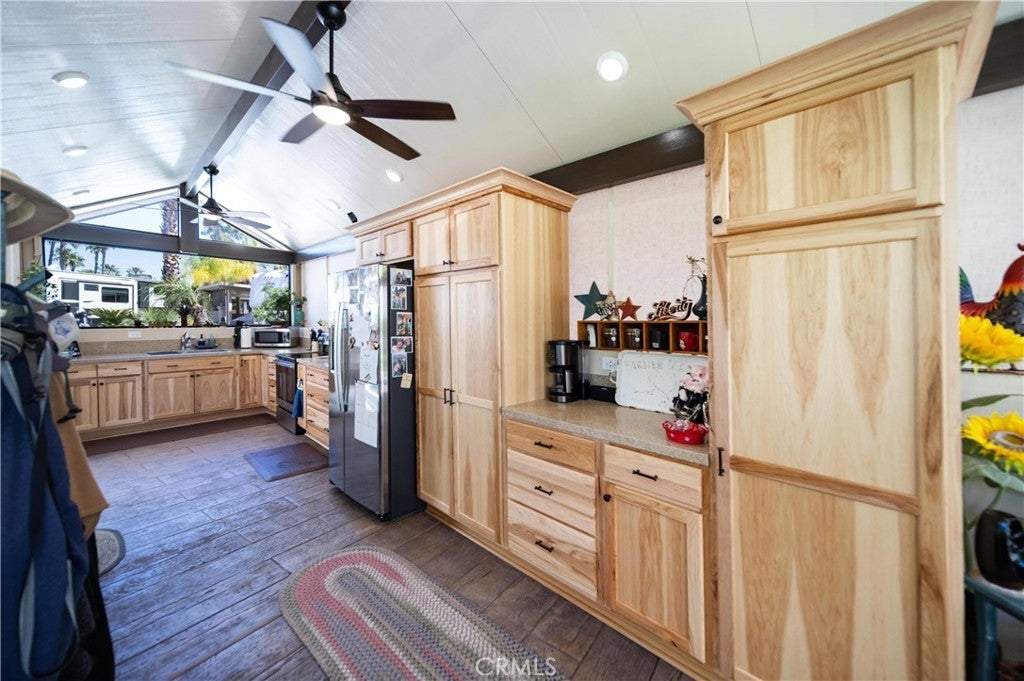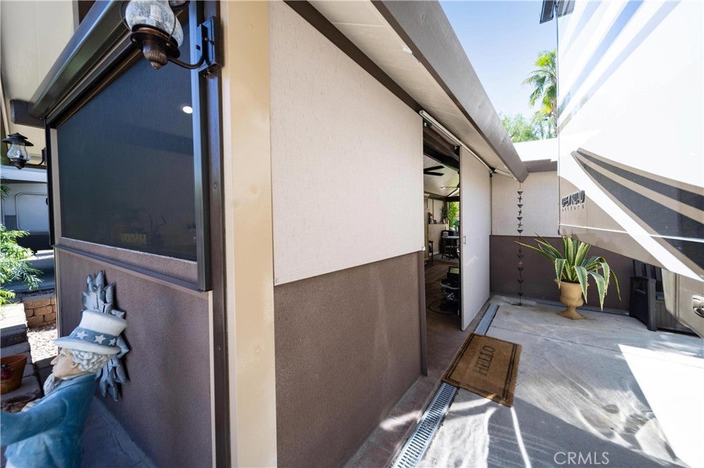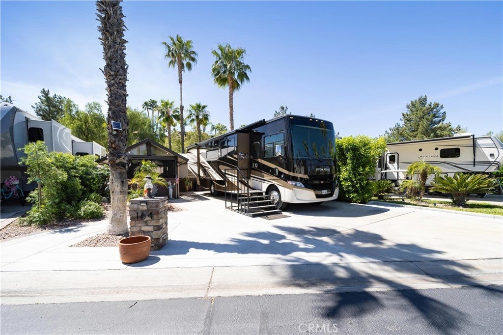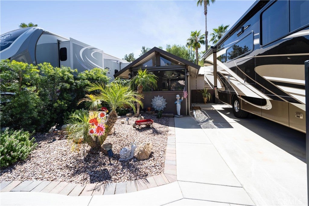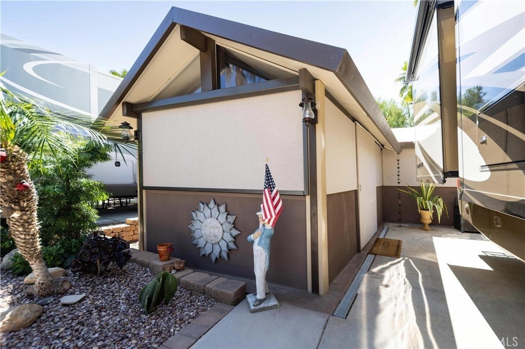 The perfect private hideaway in one of the resort’s most desirable locations! This charming property offers fantastic, low-maintenance curb appeal with beautifully finished stamped concrete and a fully enclosed design featuring double privacy screens, stucco walls, and a gabled Alumawood build-out. Inside, you’ll find a well-appointed space with gorgeous residential cabinetry, a full-size refrigerator, and an electric oven and cooktop—creating a comfortable and functional setup for everyday living or weekend escapes. Privacy hedges on both sides enhance the peaceful setting, while the stunning rear grass area creates a rare, serene environment that feels like your own wooded cabin retreat—quiet, relaxing, and surrounded by nature. Located within Rancho California RV Resort, a gated and 24/7 guard-controlled community offering resort-style amenities including a 14-hole executive golf course (free for owners with unlimited use), 5 pools and multiple jacuzzi areas, tennis courts, pickleball courts, dog park, horseshoe lawn, laundry facilities, hiking trails, clubhouse, on-site restaurant, and market. HOA includes water, sewer, trash, and common area maintenance. Whether you're looking for a peaceful getaway, full-time living, or rental potential, this unique and inviting property delivers comfort, privacy, and resort-style living all in one. Financing available.
