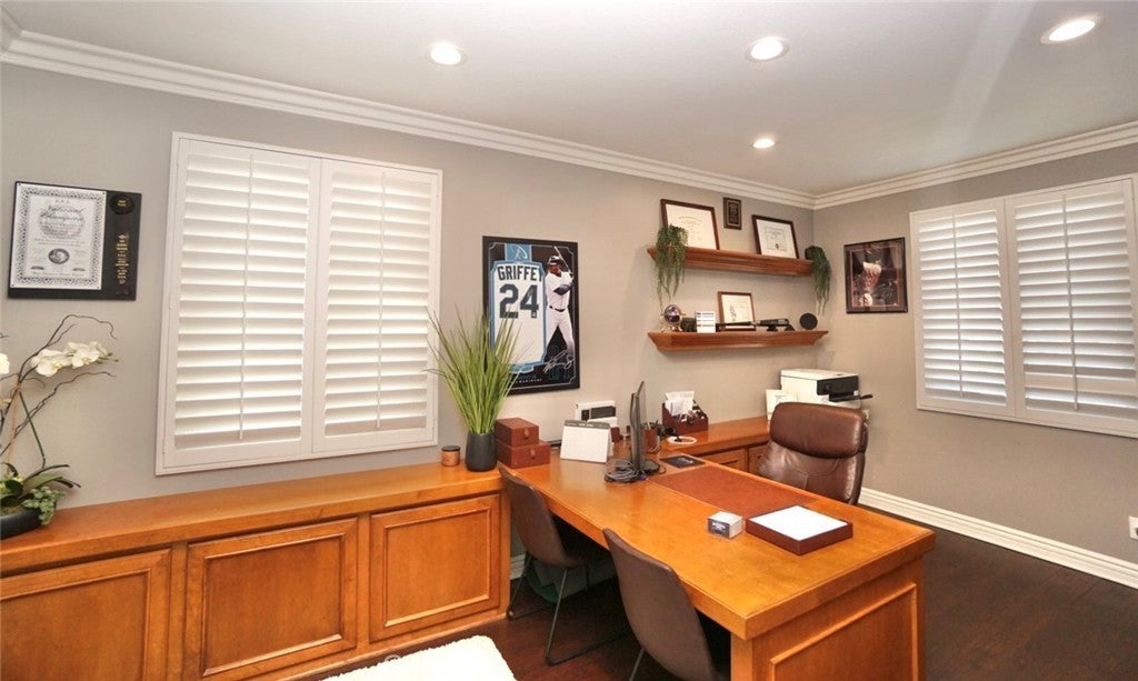 • Interior FeaturesBreakfast Area, Ceiling Fan(s), Crown Molding, Eat-in Kitchen, Granite Counters, High Ceilings, Open Floorplan, Recessed Lighting, Two Story Ceilings, Bedroom on Main Level, Walk-In Closet(s)