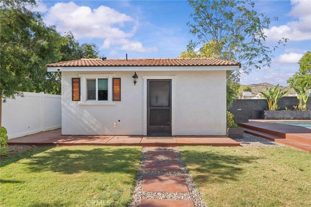 BACK ON THE MARKET, NO FAULT OF THE HOME. You have ARRIVED! Stunning remodeled solar powered pool home with a detached ADU and NO HOA! Welcome to 27497 Yellow Wood Way in the highly sought-after Murrieta Oaks community, offering the perfect mix of comfort, function, and flexibility with a 27-panel solar system, a detached studio ADU with income potential, and a private office with its own exterior entrance ideal for a home-based business. Inside, you’re greeted by a grand entry, new laminate wood flooring, fresh interior paint, and premium wood shutters throughout. The upgraded kitchen features new granite countertops, a large island with seating, farmhouse sink, and double ovens, making it a great space for both everyday living and entertaining. Upstairs you’ll find a custom loft with theater room potential, perfect for movie nights, along with updated bathrooms throughout. The layout is highly desirable with a full bedroom and bathroom downstairs and a spacious 3-car tandem garage that is oversized and can nearly fit four cars. The backyard is built for entertaining with a newly lined pool and plenty of space to relax or host. With energy efficiency, multi-gen living potential, and rental income opportunities all in one, this home stands out in today’s market. Located near top-rated schools with no HOA, it’s rare to find a property with this level of upgrades and versatility in such a great neighborhood, so don’t miss your chance to see it in person.