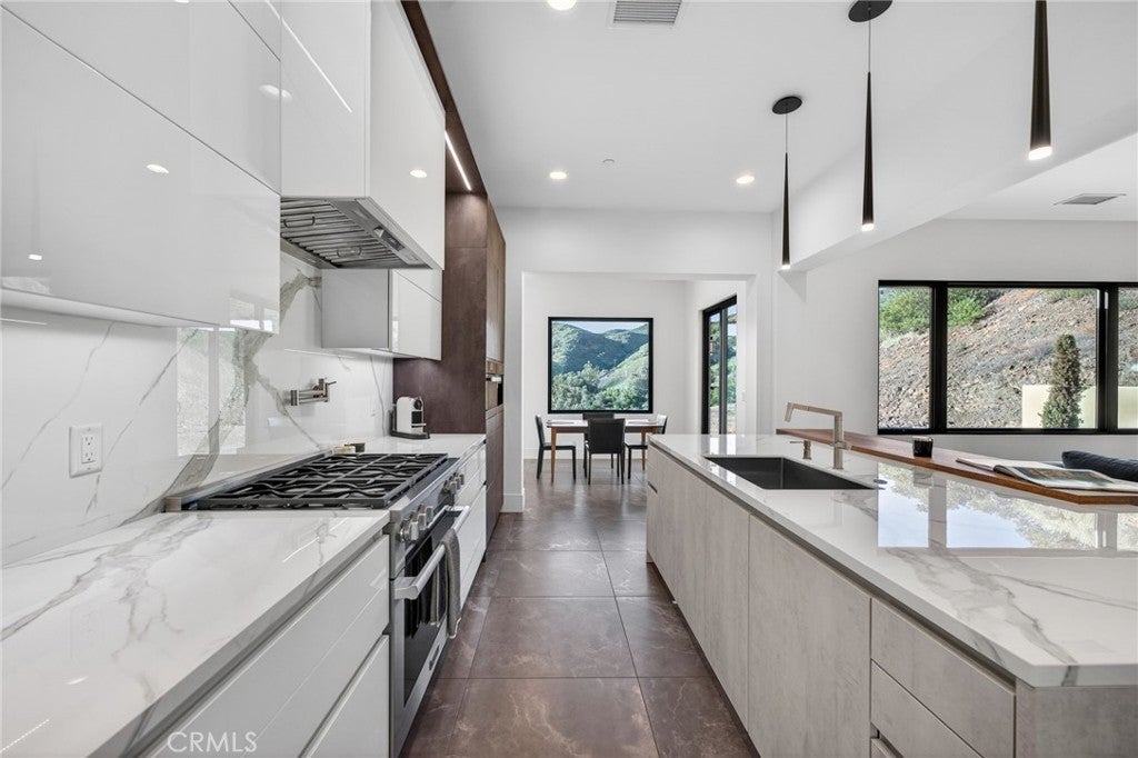 • AppliancesSixBurnerStove, Dishwasher, Disposal, Refrigerator, Tankless Water Heater
