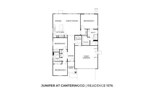 This 1,576 square foot single-story California Ranch facade home with 3 bedrooms and 2 full bathrooms also has a deep back yard. The island kitchen has QUARTZ counters, built-in stainless-steel appliances and a pantry closet. The interior comes complete with Alto (Gray) shaker-style cabinetry throughout, lots of included recessed lighting, and the buyer still has time to choose flooring. The primary bedroom has an ensuite bathroom with double sinks and a walk-in closet, and there are 2 additional bedrooms, a full bathroom, and laundry room. There is also a direct-access 2-car garage pre-plumbed for an electric car! This truly modern home has all the Smart Home features you would expect and is landscaped and irrigated in the front yard. The Juniper community is situated close to the neighborhood sports park and freeway access. This home is anticipated to be ready for move-in June 2026.