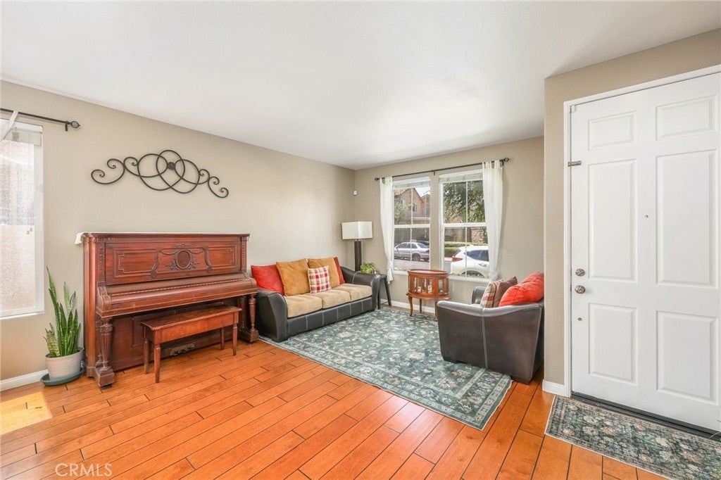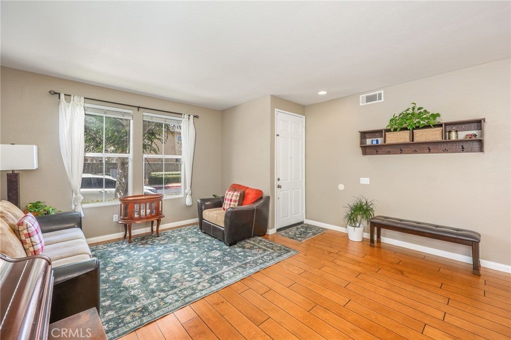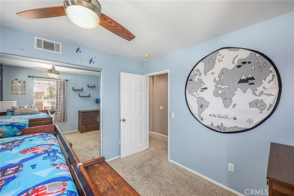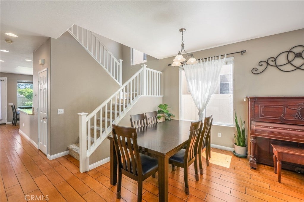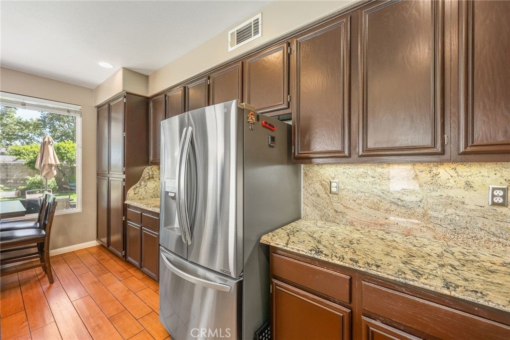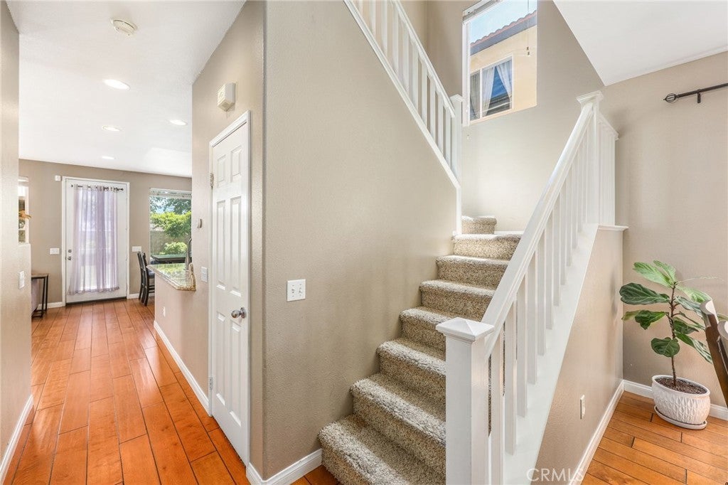 Beautiful two-story home located in the desirable Mountain Gate community of Corona, featuring 3 bedrooms, 2.5 bathrooms, warm hardwood flooring and a spacious loft that can easily be converted into a 4th bedroom. This light-filled home offers an open-concept floor plan, with the kitchen seamlessly flowing into the breakfast nook and expansive family room, complete with a cozy gas fireplace, ceiling fan, and warm wood flooring throughout the main level. The home also includes separate formal living and dining areas, perfect for entertaining. The upgraded kitchen boasts granite countertops, under-cabinet lighting, and stainless steel appliances. The primary suite features a recently remodeled bathroom with large frameless walk-in shower, his and her sinks, walk-in closet, ample storage, grey tile flooring and a soaking tub with chandelier. Two additional generously sized bedrooms offer custom paint and window treatments, along with convenient storage. Step outside to a beautifully landscaped backyard with ample shade, making it ideal for relaxing or entertaining, complete with two nectarine trees, a playground structure and 3 large garden beds, if you so desire. Recent upgrades include a new garage door, vinyl fencing, and an energy-efficient whole house fan. The home also features fully paid-off solar and a Tesla battery backup system. Conveniently located within walking distance near excellent rated schools, shopping centers, restaurants, with easy access to major freeways. The community offers a private gated playground and access to a scenic greenbelt, perfect for walking, running, and outdoor enjoyment.
